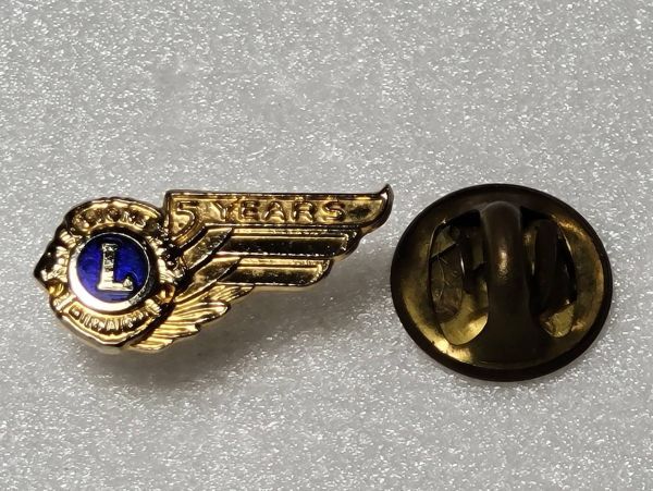 ライオンズクラブ国際協会の長期間例会皆出席 5YEARS 記念章のウィングマーク バッジになります。