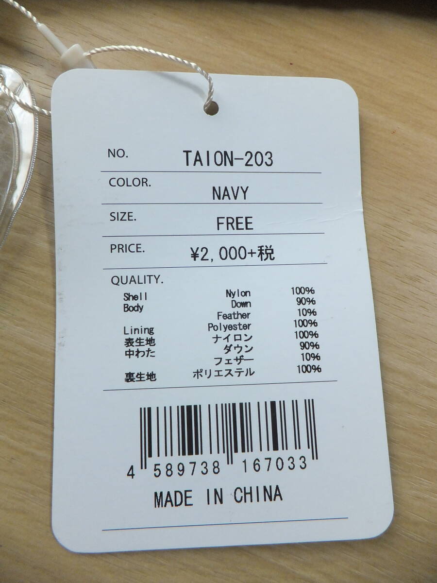 未使用タグ付 TAION タイオン ネックウォーマー ネイビー 紺色 ダウン90% マフラー TAION-203 NAVY キルティング 軽量 アウトドア S8