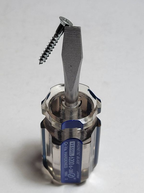 #VESSEL #ベッセル #クリスタラインドライバー #スタビータイプ #No.6200 #No.720 #クリスタライン柄 #マイナスタイプ #クロームバナジューム鋼 #全身焼入 #マグネット入り #短い軸とグリップ #家具 #家電 #自動車の整備 #工具 #DIY用品