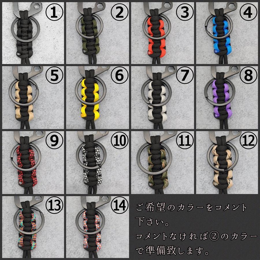 パラコードストラップのカラーは②番(ブラック&カーキ)で準備致します