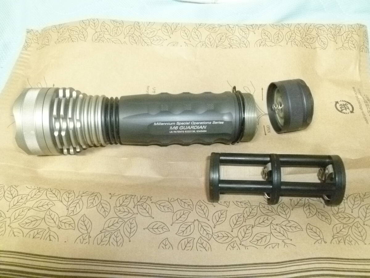 点灯確認済みですので直ぐに使えますが新品じゃ有りませんので多少の傷が有ります。明るさは、笑える位爆光です。現在入ってるバルブは、廃盤品の為に特注扱いで入手した新品が入ってます。この金額で高いと思ったら絶対に入札しないで下さい。価値の判らない方に譲りたく有りませんし知識の無い方からの質問には、答えません。シュアファイヤマニアの方に是非譲りたいです。ノークレーム・ノーリターンで!球が切れた場合は、御自身でメーカーに<BR>発注して下さい。宜しく御願いします。