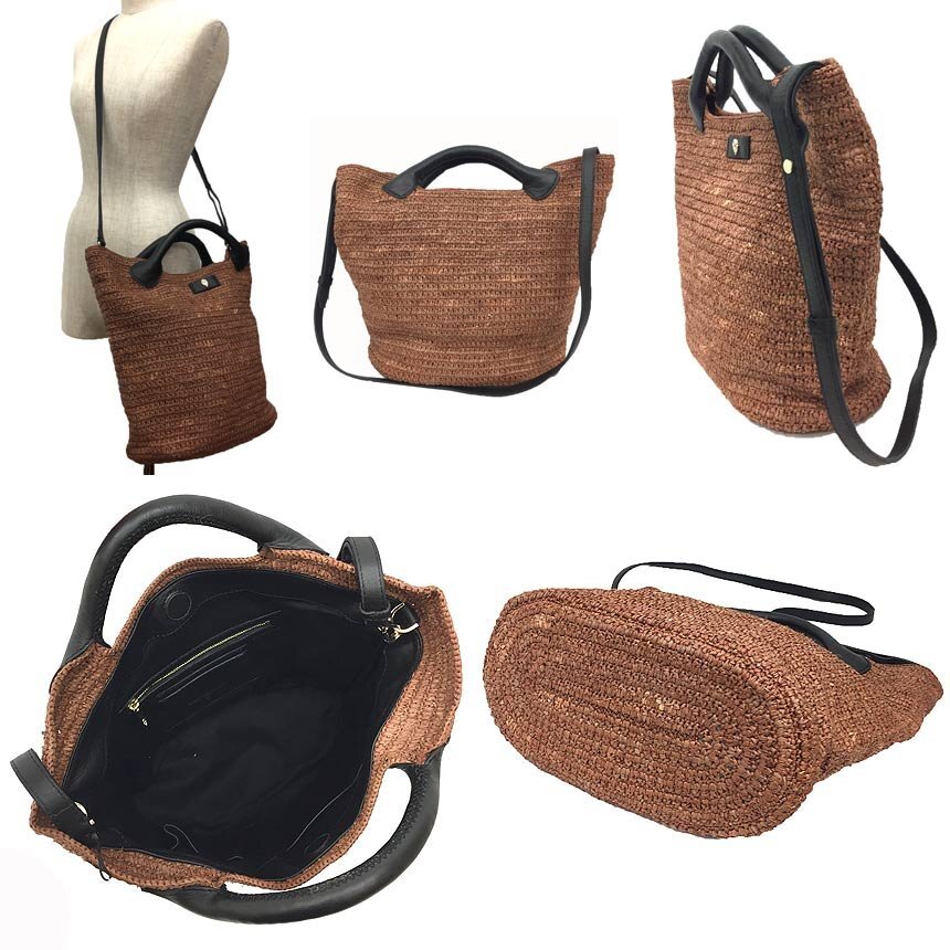 | 素材 | 本体:ラフィア(天然草木) ハンドル:牛革 裏地:100% 綿 |