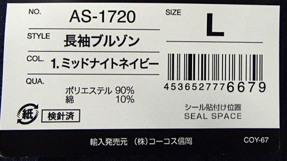 未使用 コーコス信岡 アンドレ スケッティ フォース 長袖ブルゾン AS-1720 メタミッドナイトネイビー L 作業着 ワークウェア アウトレット