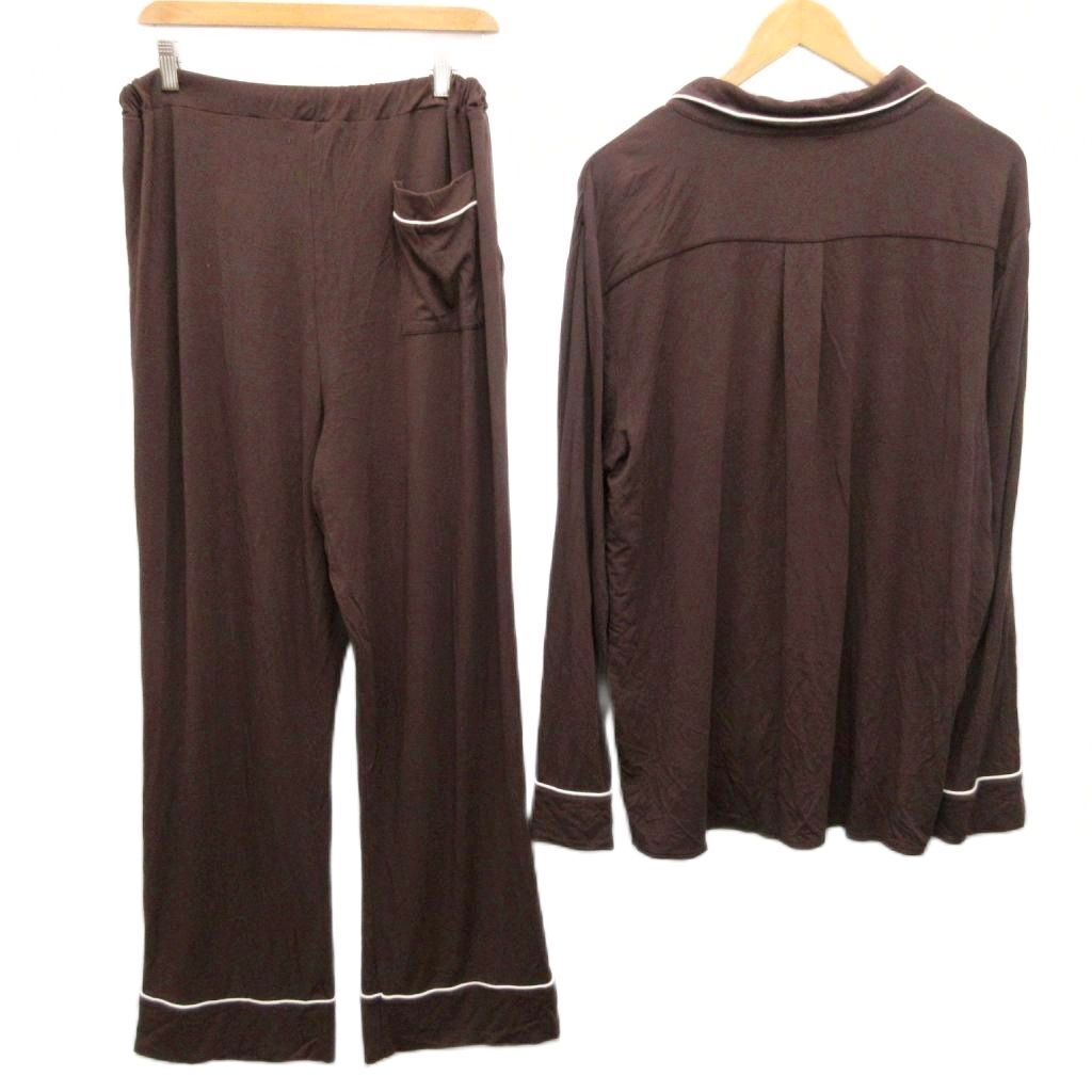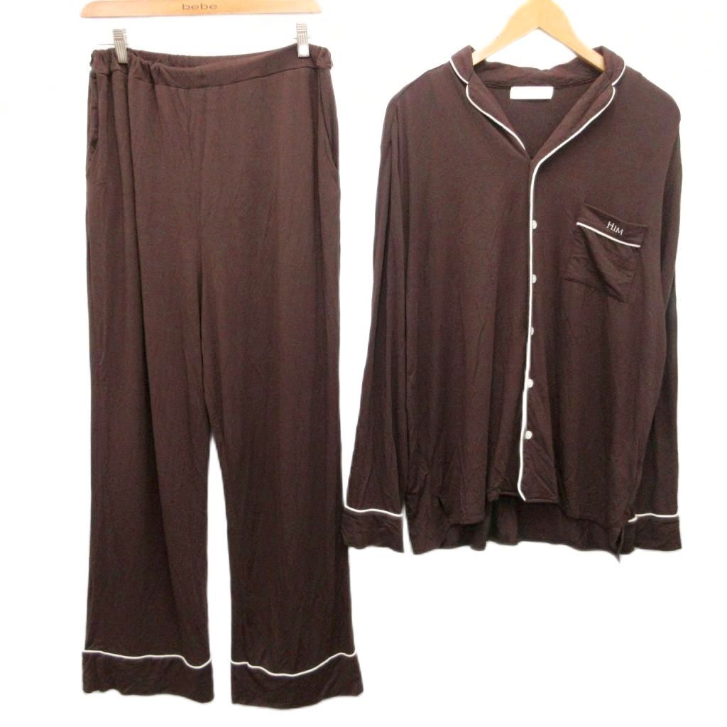 ジェラートピケオム GELATO PIQUE HOMME モダールパジャマシャツ パンツ セットアップ 上下 HIM 刺繍 ストレッチ L 茶 ブラウン 系 ■YHS8 1013 メンズ