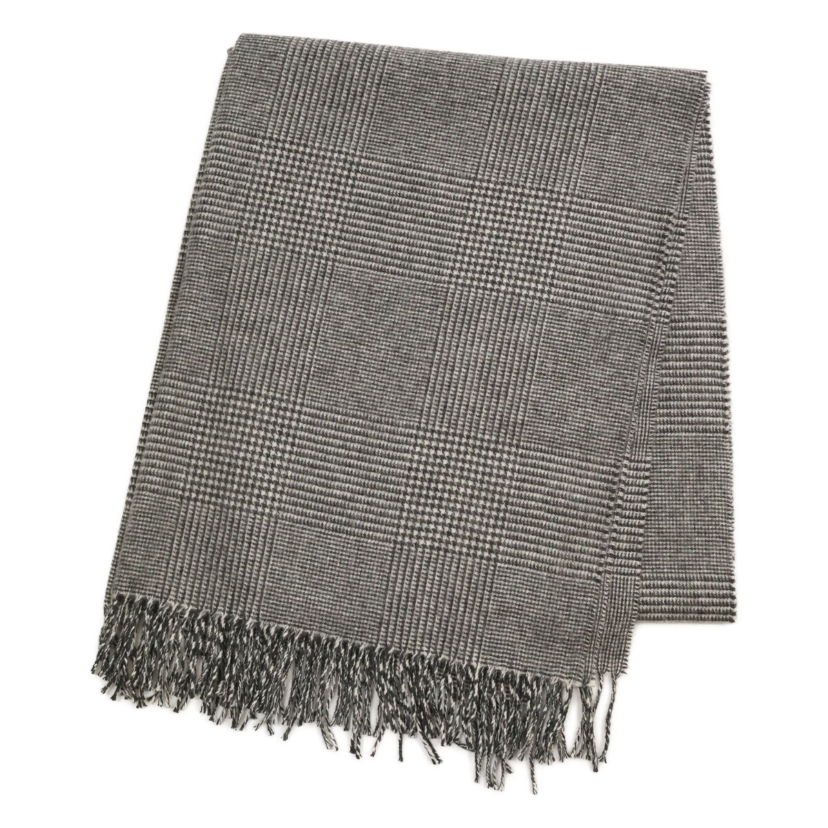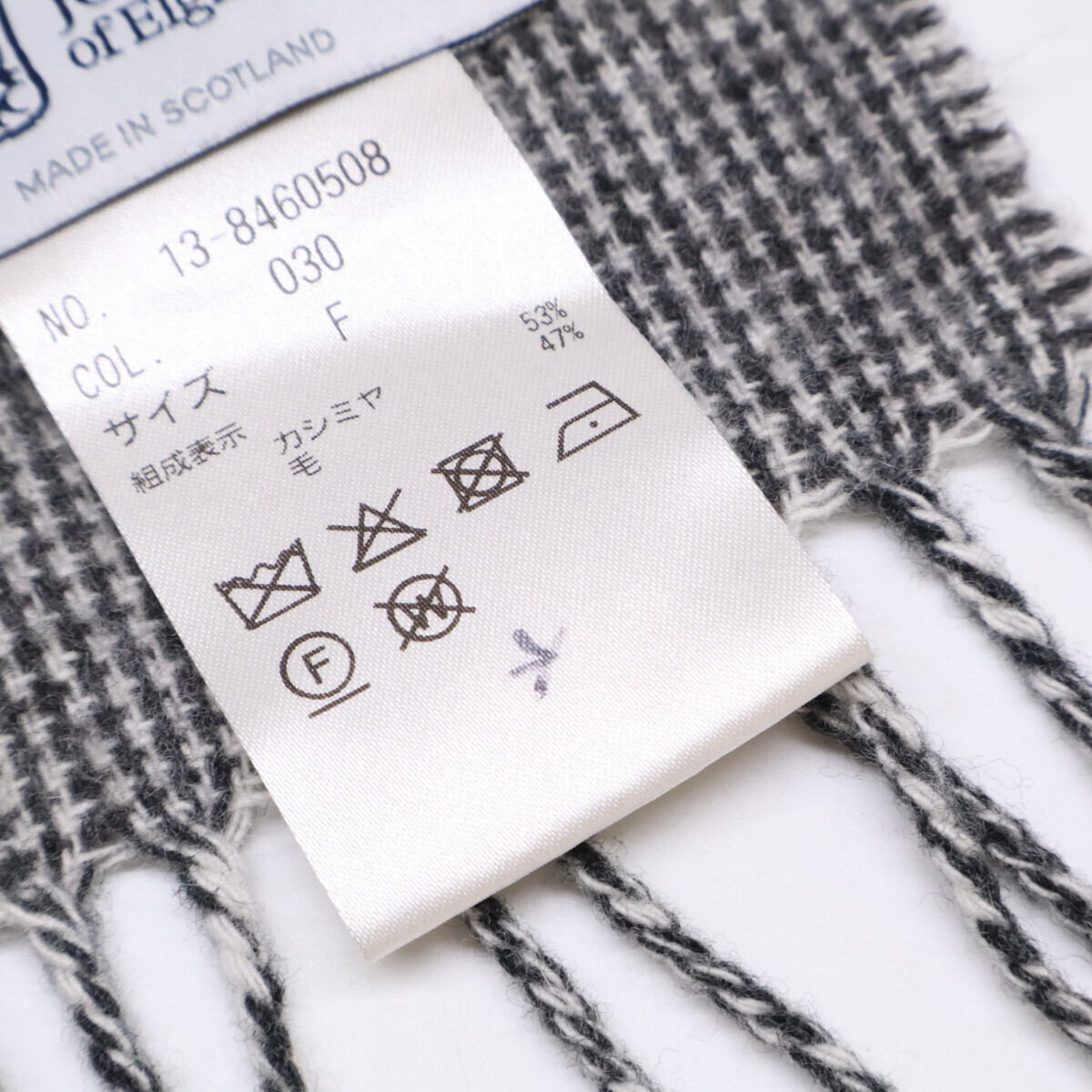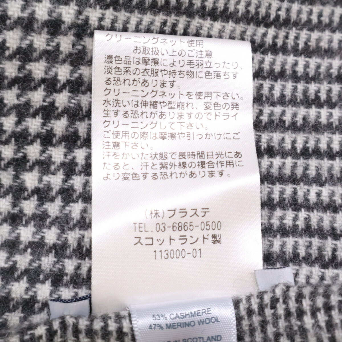 Johnstons ジョンストンズ PLST プラステ別注 13-8460508 グレンチェック カシミヤ/ウール フリンジ マフラー ブラック/ホワイト