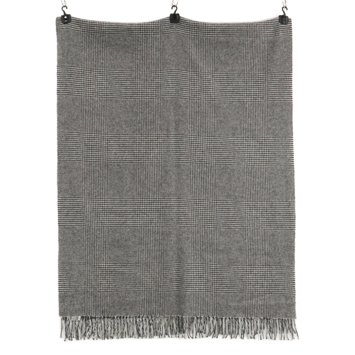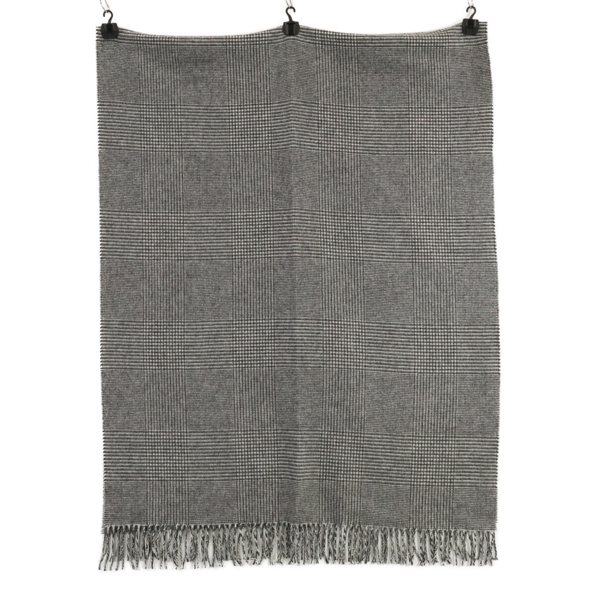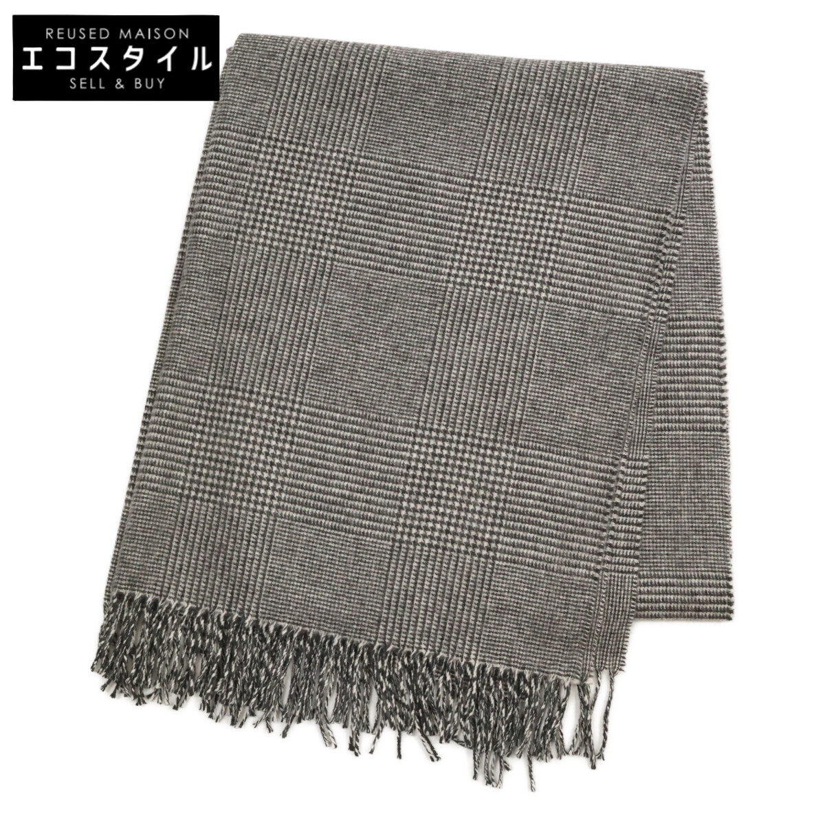 Johnstons ジョンストンズ PLST プラステ別注 13-8460508 グレンチェック カシミヤ/ウール フリンジ マフラー ブラック/ホワイト