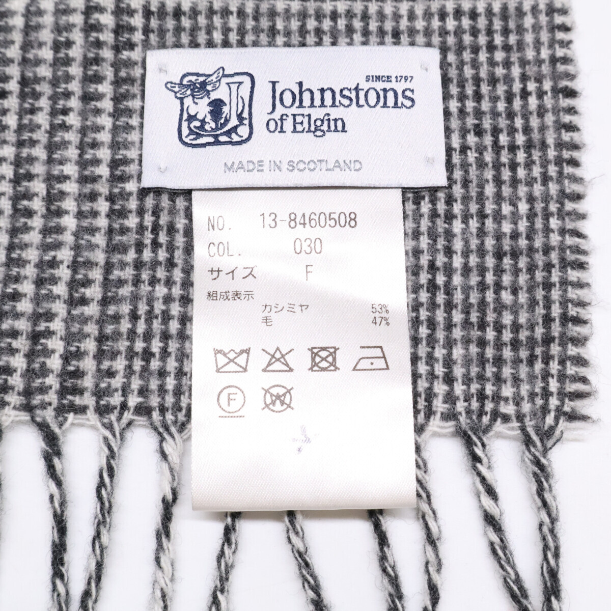 商品名 ジョンストンズ PLST プラステ別注 13-8460508 グレンチェック カシミヤ/ウール フリンジマフラー