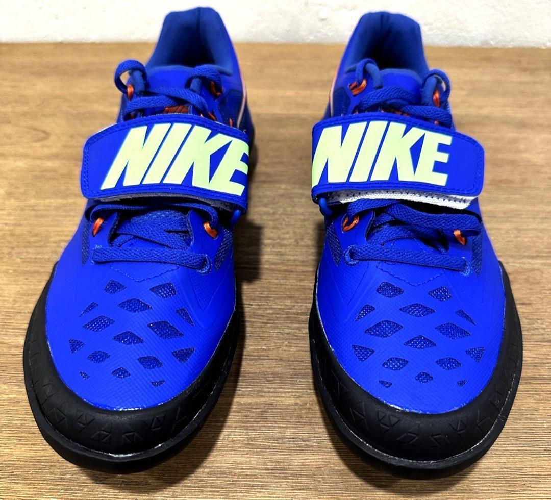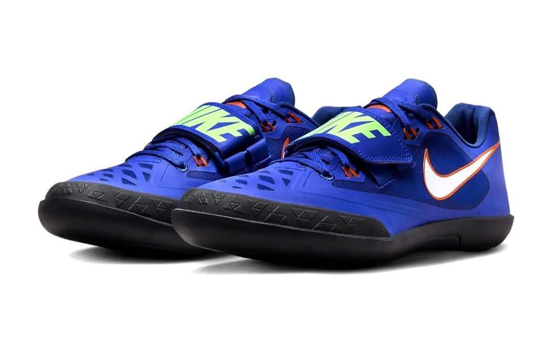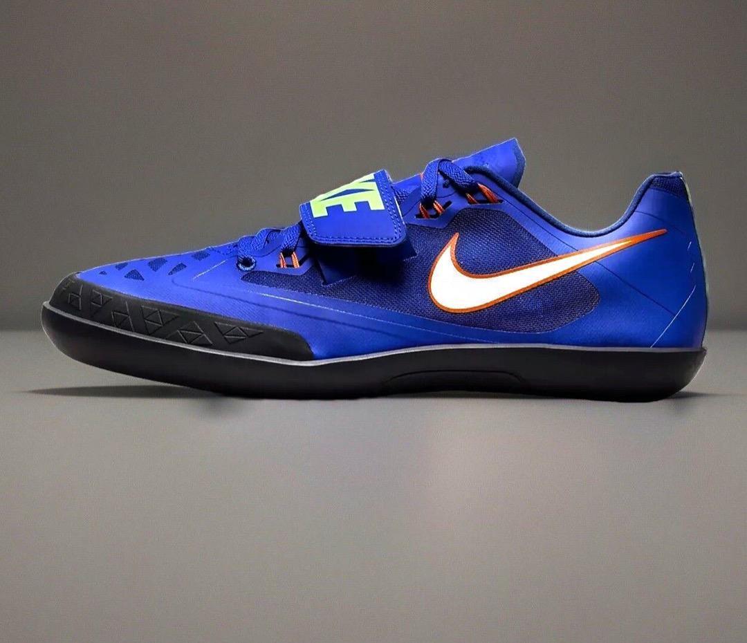 NIKE ZOOM SD 4 TRACK & FIELD VOLT BLACK THROWING SHOES!!!!! Whether rotating or gliding, the Nike Zoom SD 4 delivers a contoured support for elite-level performance. The no-sew upper provides seamless comfort while the midfoot strap and Flywire cables wrap under the arch, erasing internal movement as you're preparing to launch. FEATURES: - No-sew synthetic leather in the upper offers seamless support. - Integrated strap and Flywire cables wrap the arch for incredible lockdown. - Mesh enhances breathability on the vamp and quarter panels. - Rubber toe tip adds durability for planting and forward movements. - Smooth carbon rubber in the outsole for gliding or rotations. - High-abrasion rubber for ground-gripping traction. - Durable midsole foam offers lightweight impact protection. - Flexible, textured outsole for fast throwing circles and wet conditions. - Forefoot Pebax plate for durability underfoot. #北口榛花 |