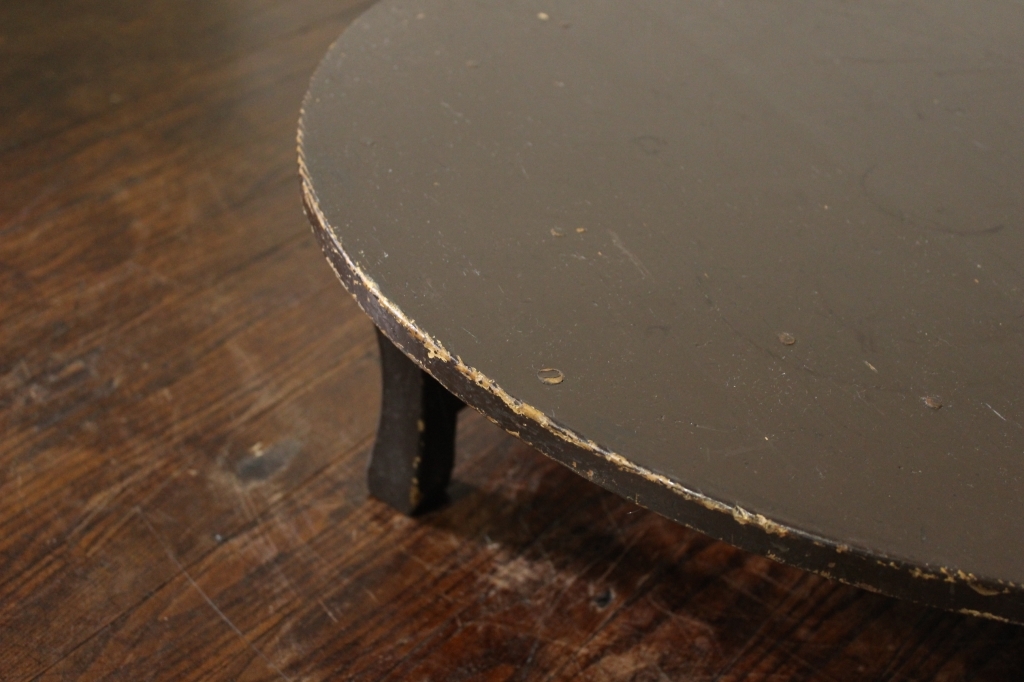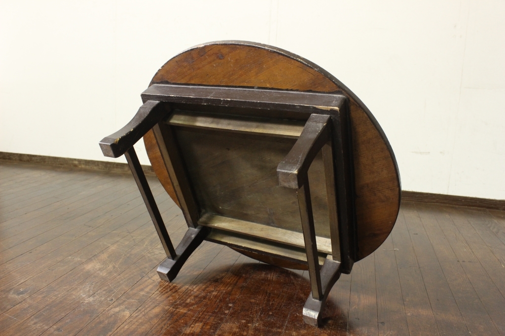 | 商品紹介 | 古い丸ちゃぶ台です。 古い質感がいい感じで、レトロな味わい深い一品です。 折りたたみがきくので収納に重宝します。 使いやすいサイズで実用性抜群、レトロ系アイテムとしてオススメです。 |