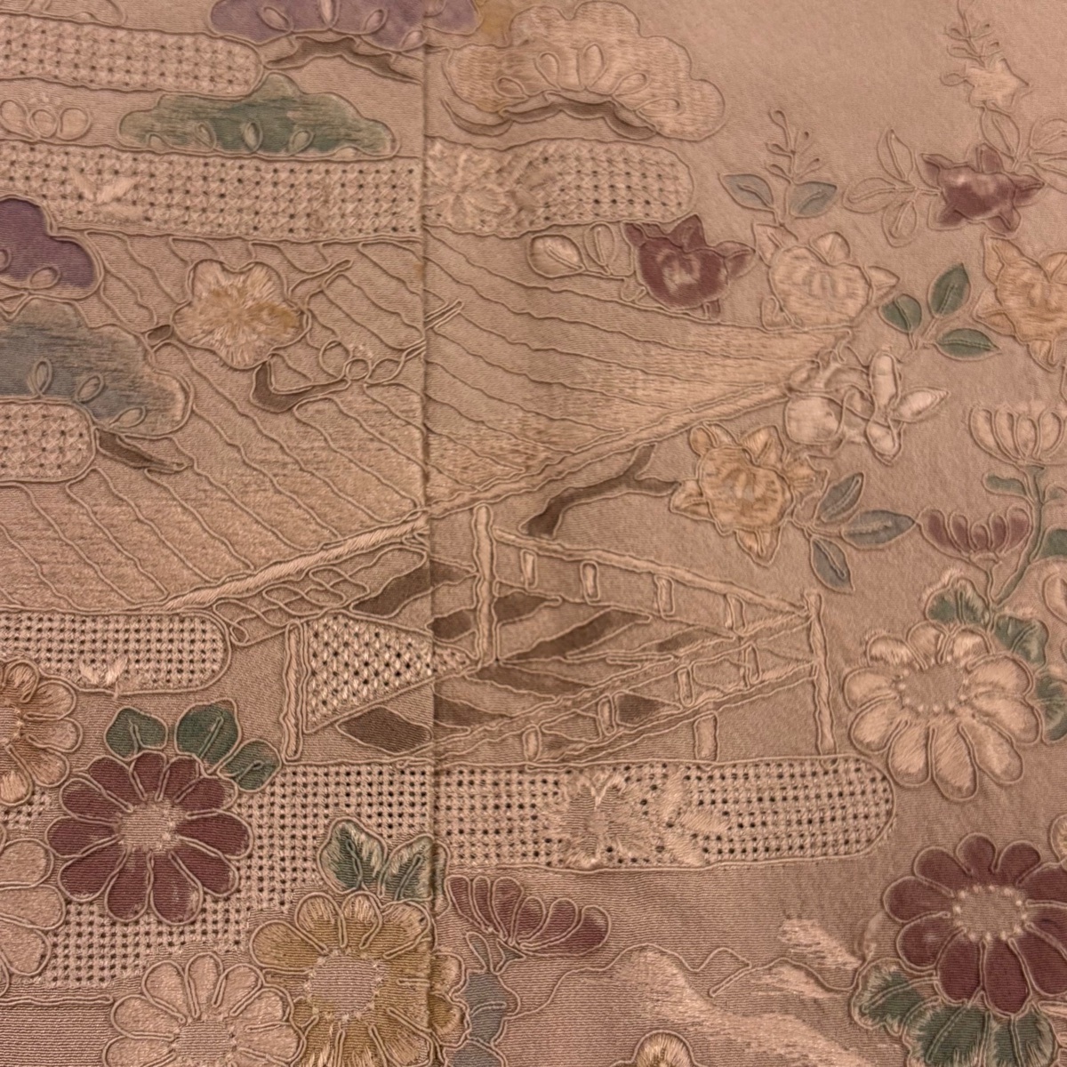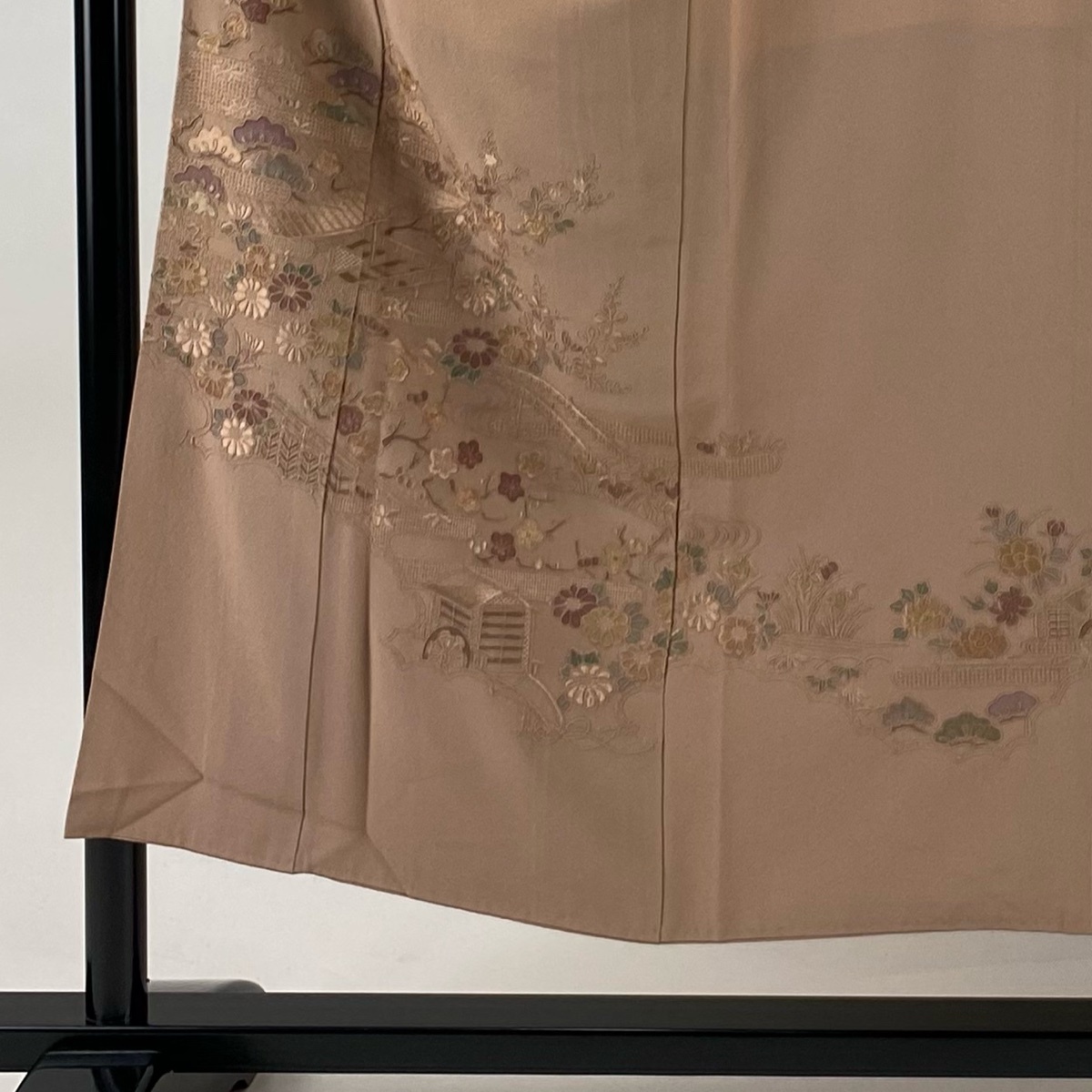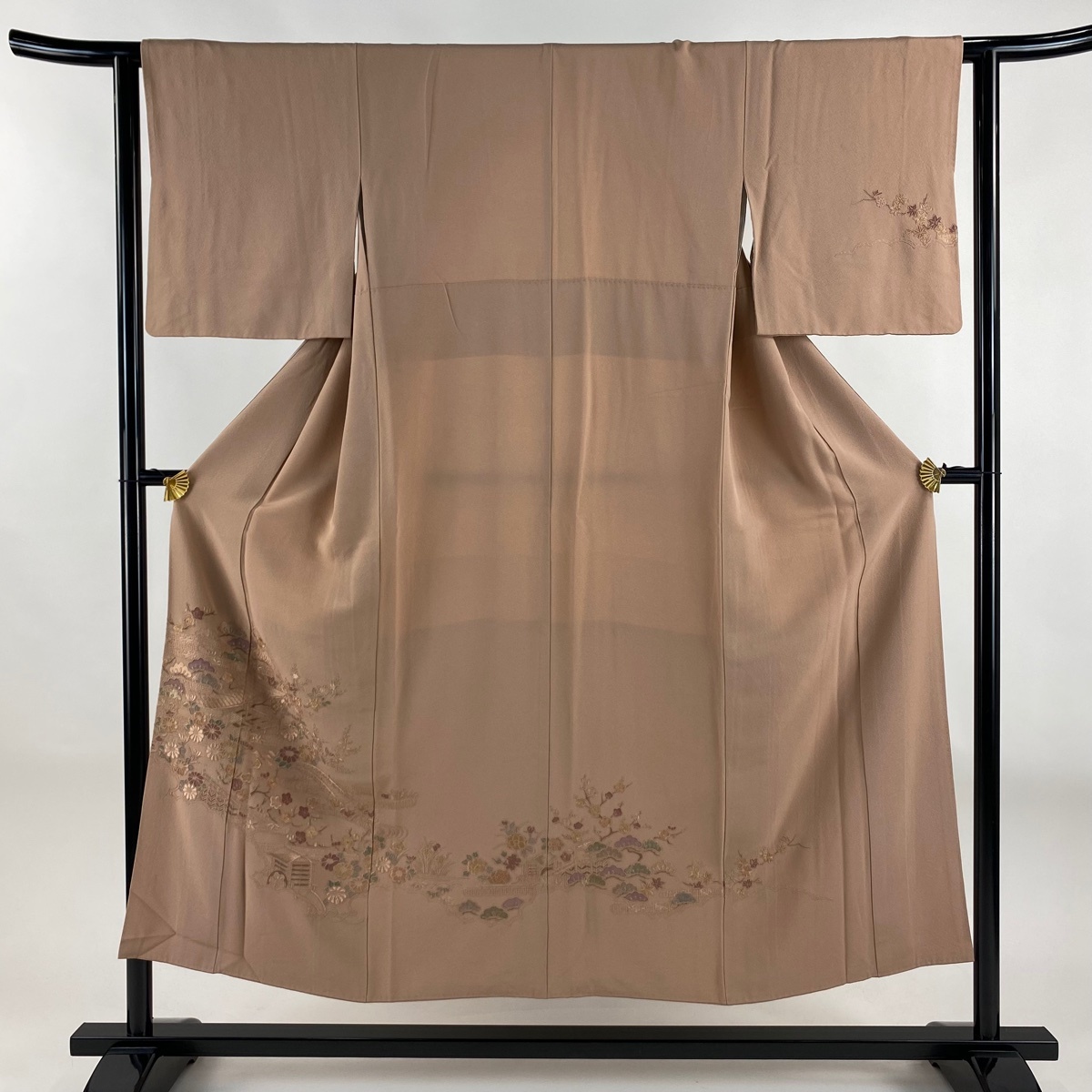 | 付下げ 秀品 松竹梅 建物 刺繍 薄小豆 袷 身丈150 裄丈62 S 正絹 【中古】 |
