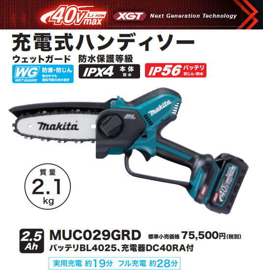 マキタ 充電式ハンディソー MUC029GRD 【40V】