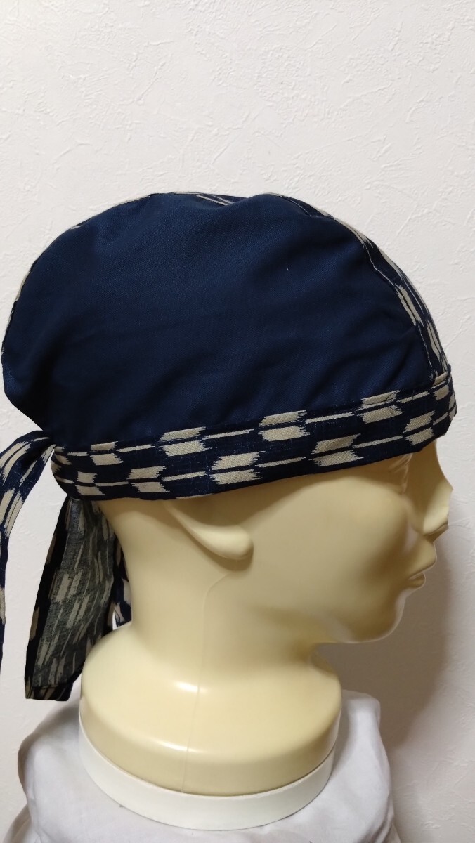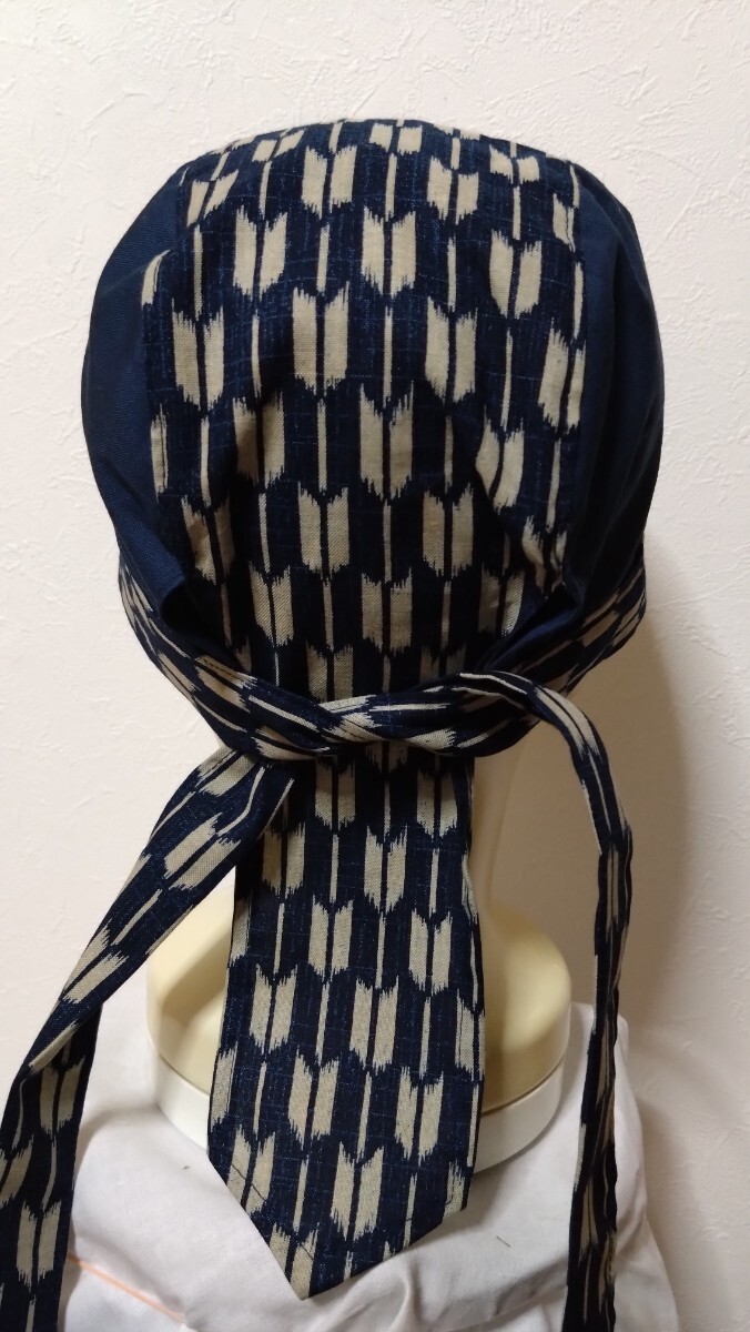 ★バンダナキャップ★ハンドメイド 和柄 矢絣×無地 紺