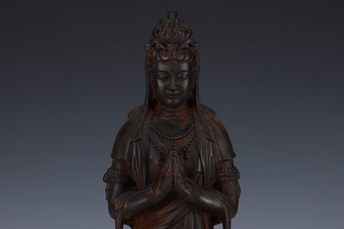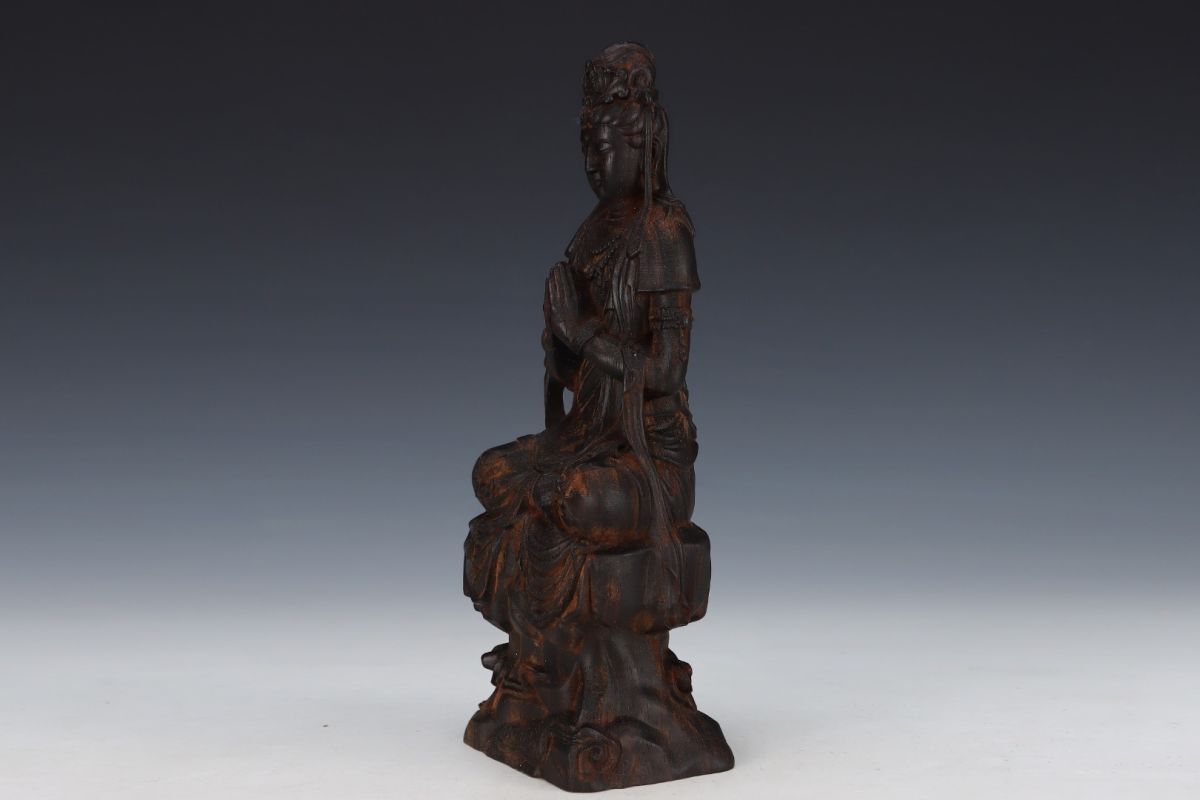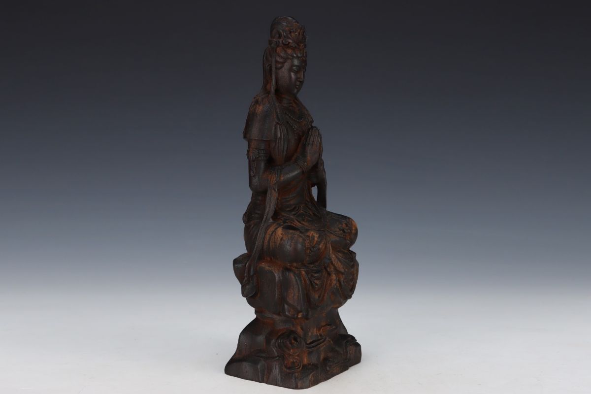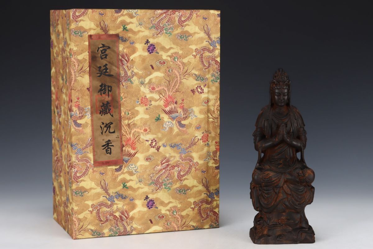 永し 清時代 大清乾隆五十六年内務府監製 老沈香 珍木彫 觀音菩薩 極細工 置物擺件 古美術品 時代物 古董品 収集 旧家蔵出 中国唐物 A12