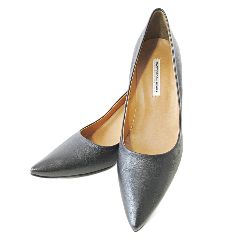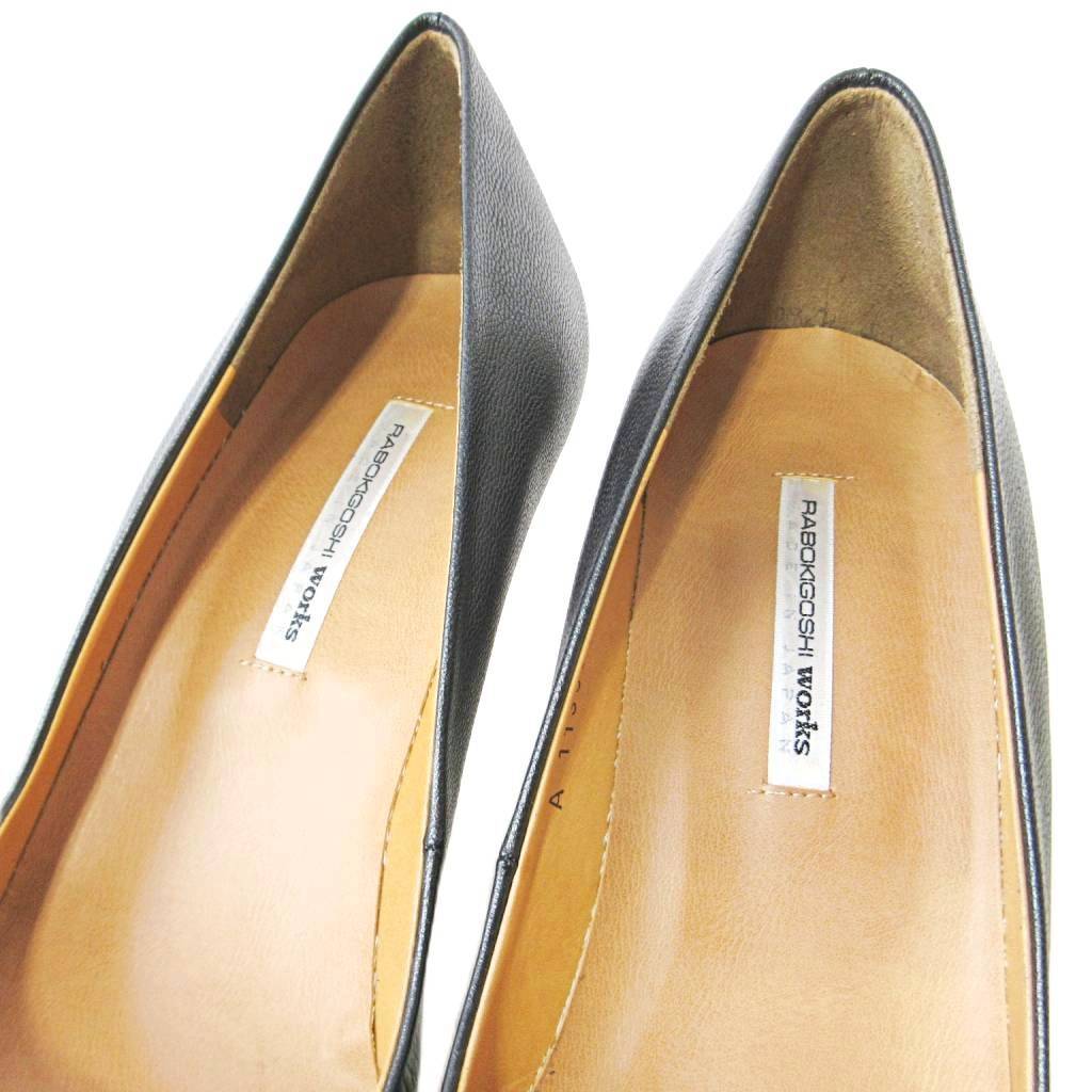 ラボキゴシ RABOKIGOSHI 美品 ワークス パンプス レザー ポインテッドトゥ ハイヒール 25.5cm 黒 ブラック 1020 レディース