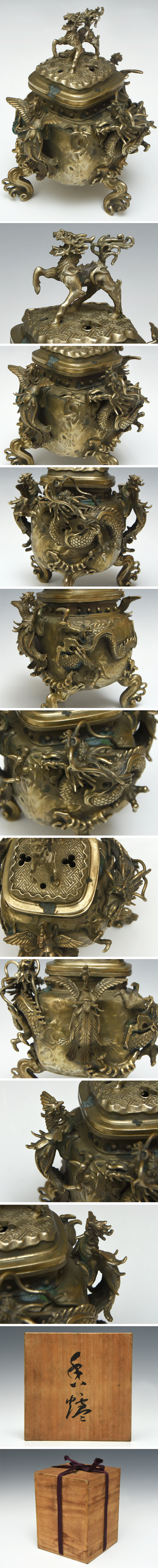 蝋型師 金工家 二上常太郎 号: 元威 (造) 洋銀 麟竜香炉 共箱 真作保証書付 香道具 茶道具 金属工芸 |