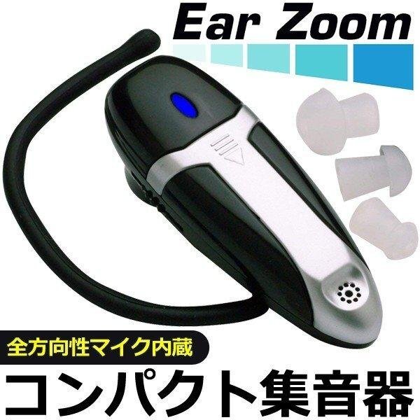 集音器 耳かけ式 全方向性 マイク内蔵 両耳対応 イヤーピース3サイズ付属 小型 イヤホン テレビの音 会話 送料無料 100T◇ イヤーズーム