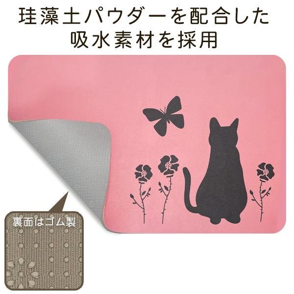 ソフト 珪藻土バスマット 洗える やわらか 吸水 速乾 猫 割れない 足拭き 風呂 新生活 送料無料- 80S◇ 猫柄ソフト珪藻土バスマット:ピンク