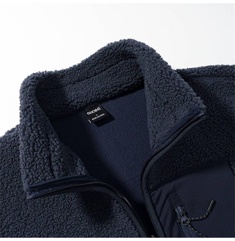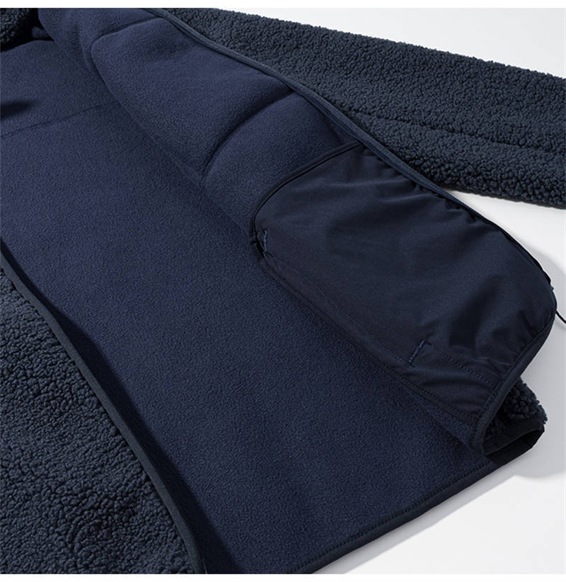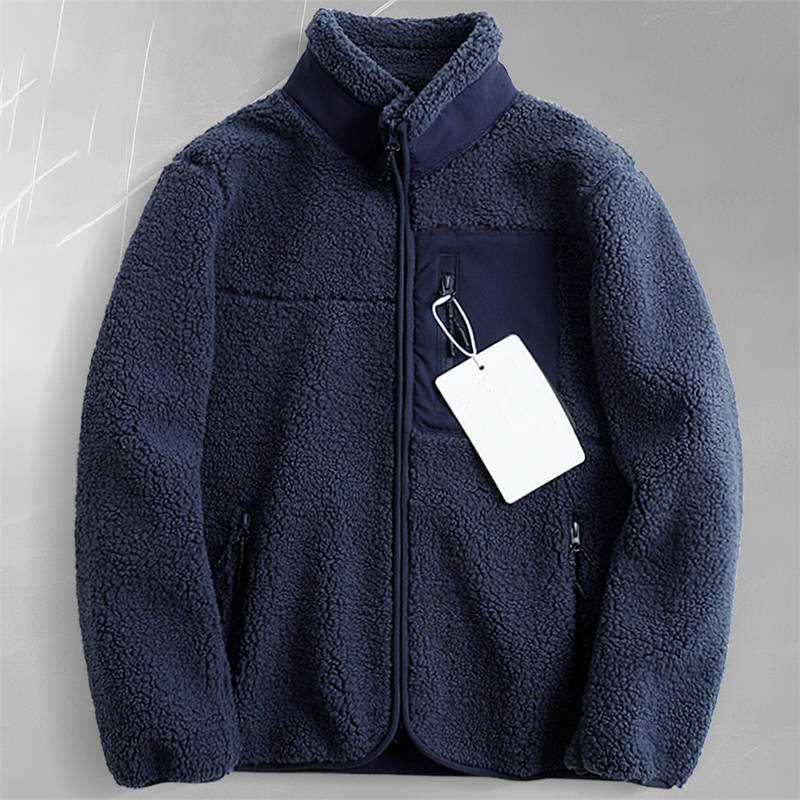 1460-XLネイビー フリースジャケット メンズ 裏起毛 立ち襟 ジャケット ボアジャケット 新品 極暖 冬服 ポケット付き パイピング ブルゾン