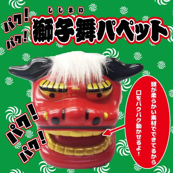 獅子舞のパペットです。手を入れて口をパクパク動かせます。(冬場は少し堅め)