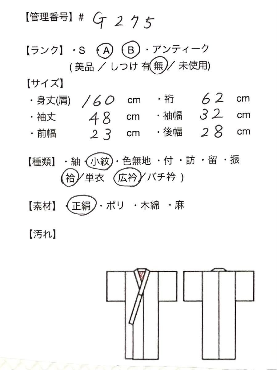 ・花唐草や麻の葉文様がとても素敵な小紋のお着物です。 ・胴裏にシミがあります。(写真 9枚目) ・表地は状態が良く、まだまだ着用していただけますので、おすすめのお着物です。 ・お安く出品致しますので、是非この機会にいかがでしょうか。 |