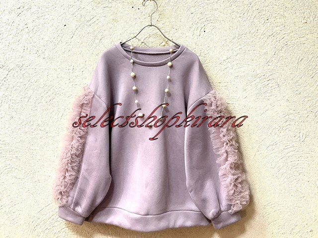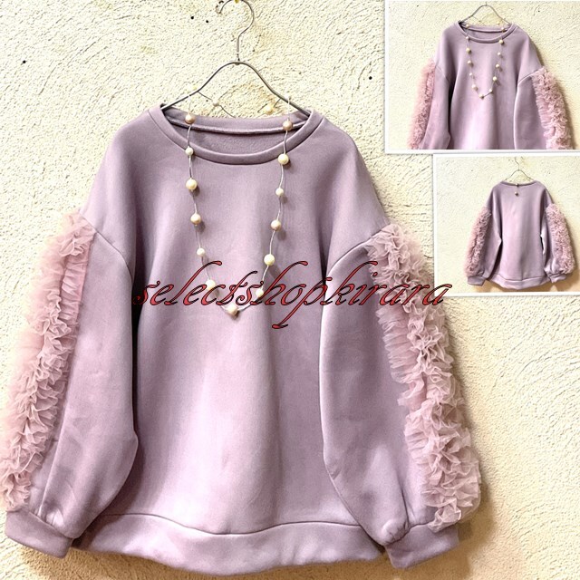 ★暖か裏起毛☆袖チュールフリル☆スウェットプルオーバー ★