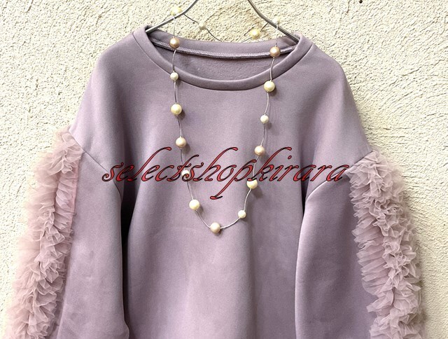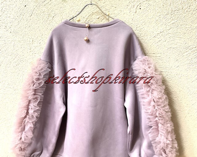◎暖かさと華やかさを兼ね備えた裏起毛仕様のスウェットプルオーバーです袖には繊細なチュール素材を使用したフリルデザインを施し、女性らしい上品さをプラス。