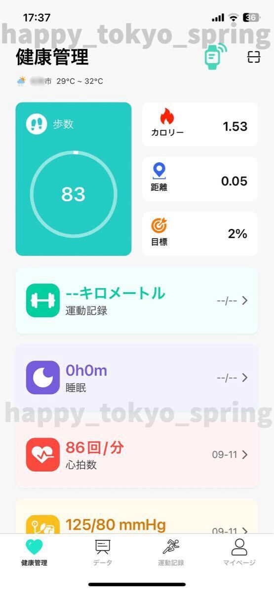 ■さらにスマホとペアリングして、専用アプリから運動記録、血圧、心拍データ、血中酸素などの記録を確認することができます。日常生活や健康管理に非常に役立ちます。