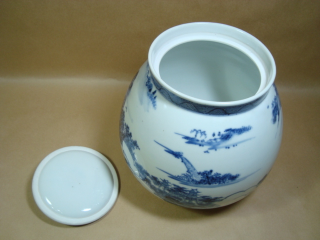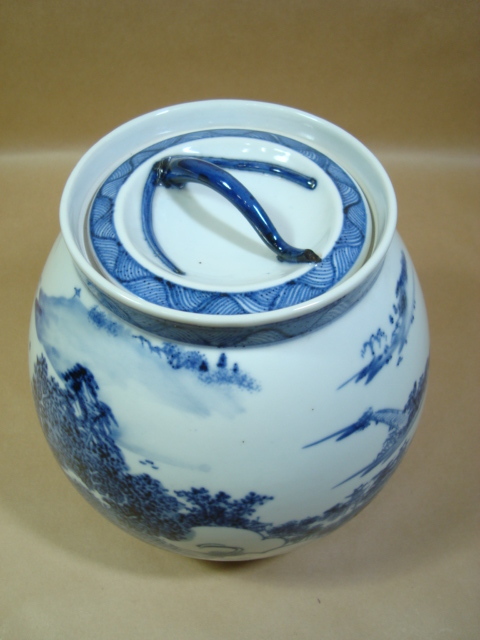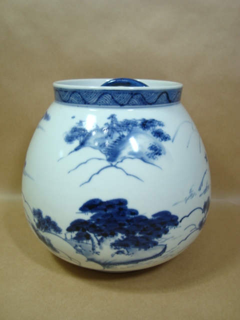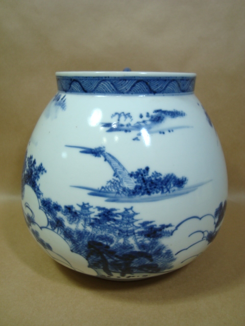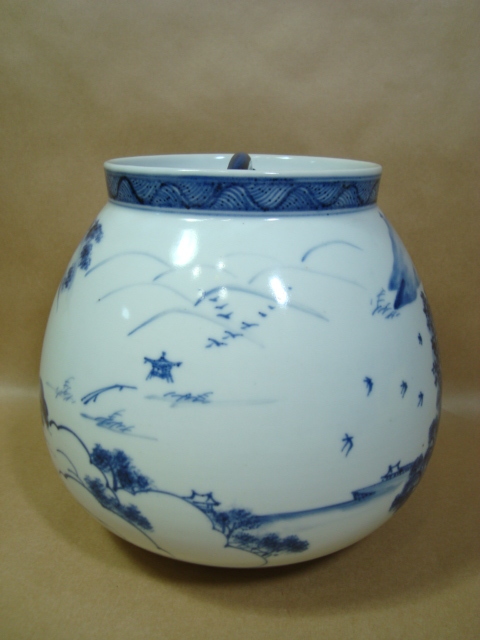 茶道具★膳所焼 淡海ぜぜ 陽炎園★近江八景 染付芋頭水指★箱なし