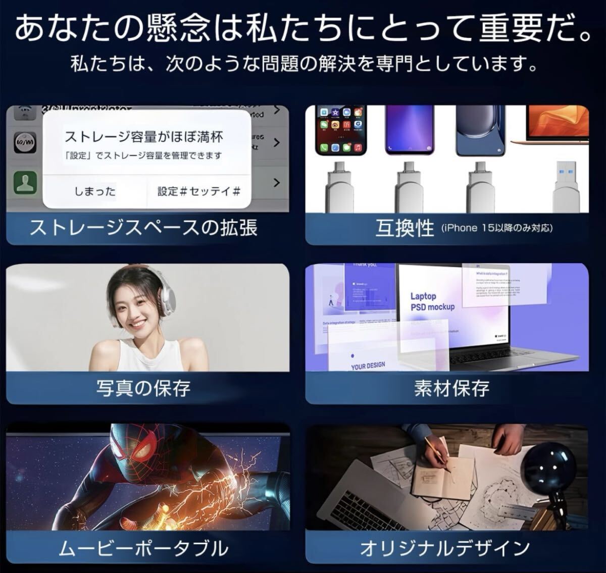 【2TB USBメモり 】スマホの写真や動画が多すぎて、スマホのメモリが足りなかったらどうしよう? この2TBのUSBメモリを使って、この悩みを解決しましょう。2TBのスマホUSBメモリでストレージを拡張でき、スマホを容量不足から徹底的解放させます!本製品は、type-c接続をサポートするすべての携帯電話に対応しています。