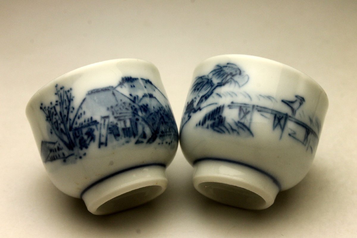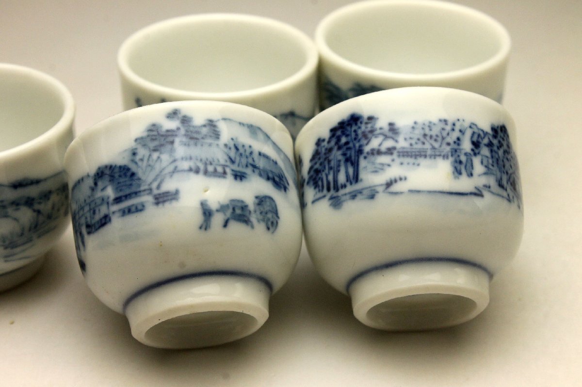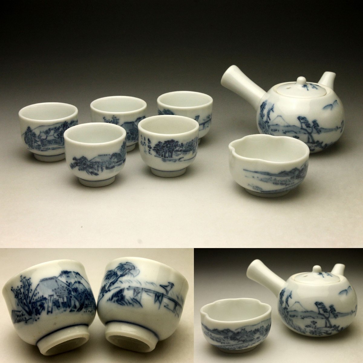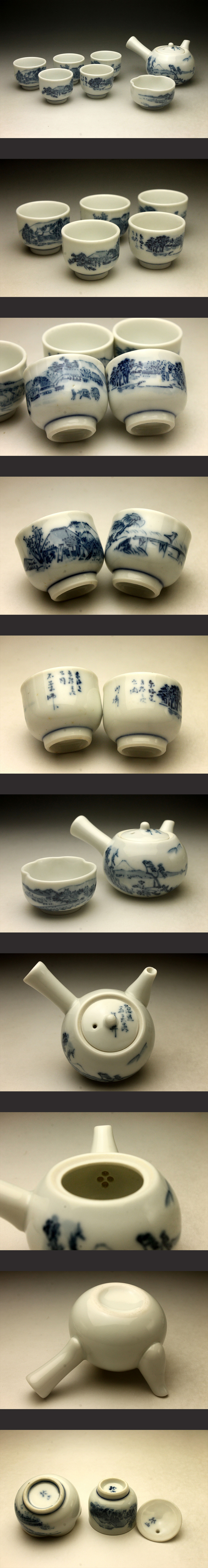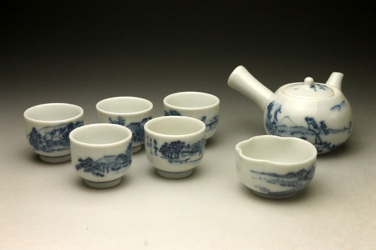 【余韻】 京焼 染付山水文 煎茶器一式(7点)★急須 湯冷 湯呑5客 無傷美品<同梱可>