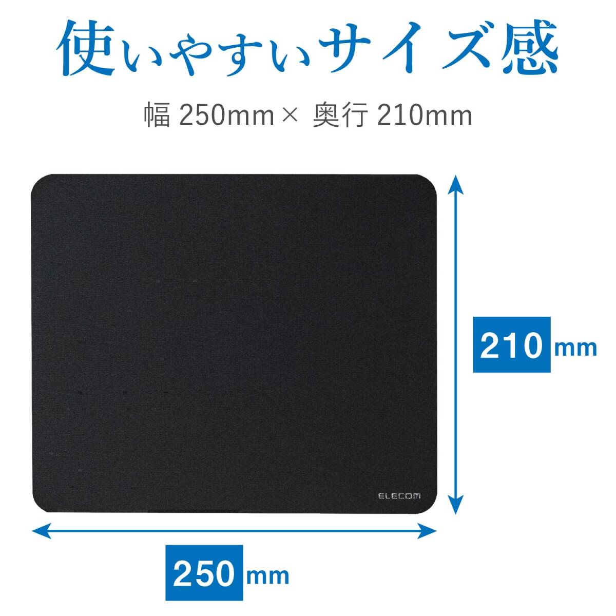 【 仕様 】 ■ サイズ:幅 250.0mm×奥行 210.0mm×高さ 2.0mm ■ 材質:表面:ポリエステル/裏面:天然ラバー ■ カラー:ブラック 【 説明 】 ■ 表面にはスムースクロスを採用し、マウスがはみでたり落ちたりしないなどのマウスパッドの基本を押さえたベーシックマウスパッドです。 ■ クッション性のある天然ラバー素材によって、デスクと手の間に生じる圧力を分散し、負担を軽減します。 ■ 裏面の天然ラバーにはグリップ性を高める特殊加工を施し、デスク上でズレない安定性を実現しています。 ■ 幅250mm×奥行210mmでオフィスや自宅など様々な場所で使用できるサイズです。 ■ マウスが原因のデスク天板への傷を防ぎます。 ■ BlueLEDマウス、レーザーマウス、光学式マウスなどすべての読み込み形式のマウスに対応しています。 ※ ご使用になるマウスの仕様や個体差により、一部正常に動作しない場合があります。