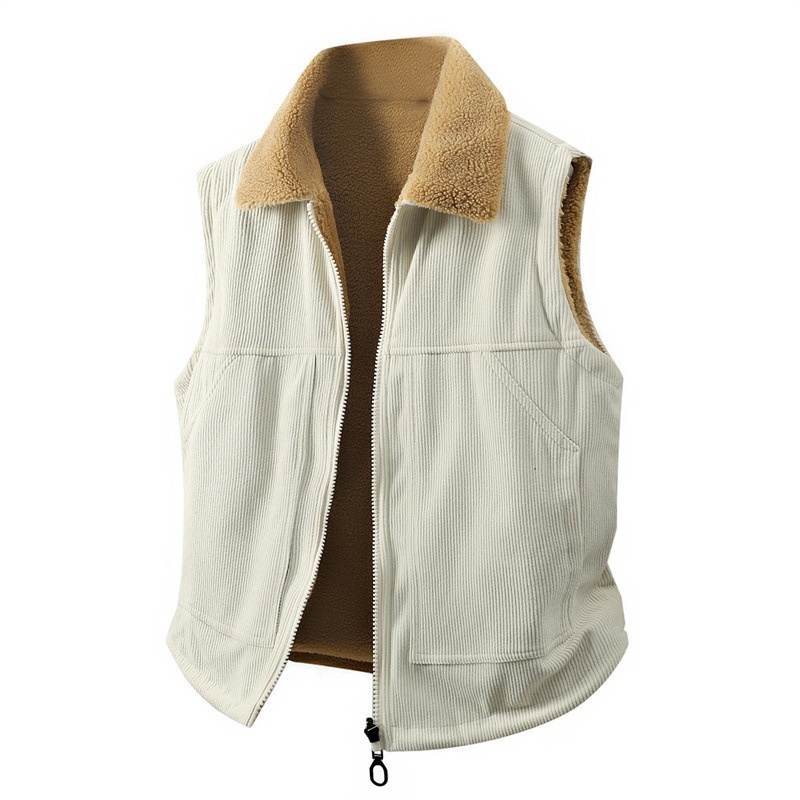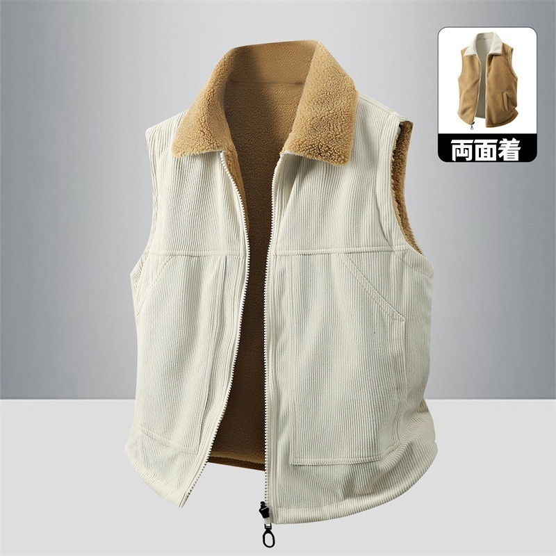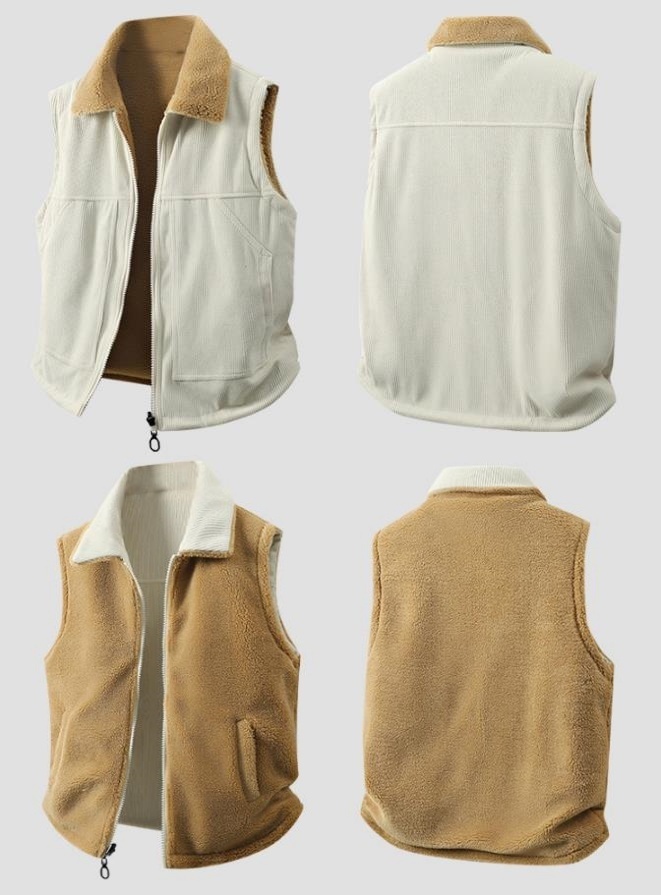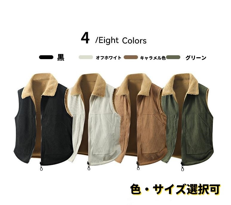 アウトドアベスト ボアベスト フリースベスト コーデュロイ・リバーシブル 袖なしジャケット 新品・メンズ  キャンプ トップス【HT2517】オフホワイト 4XL