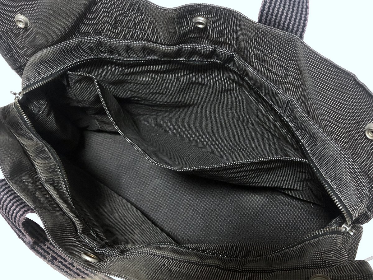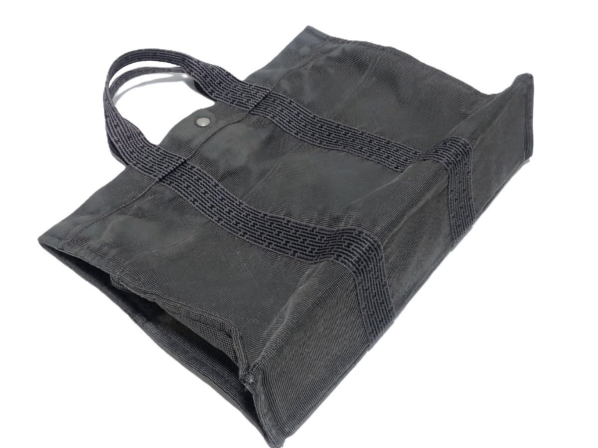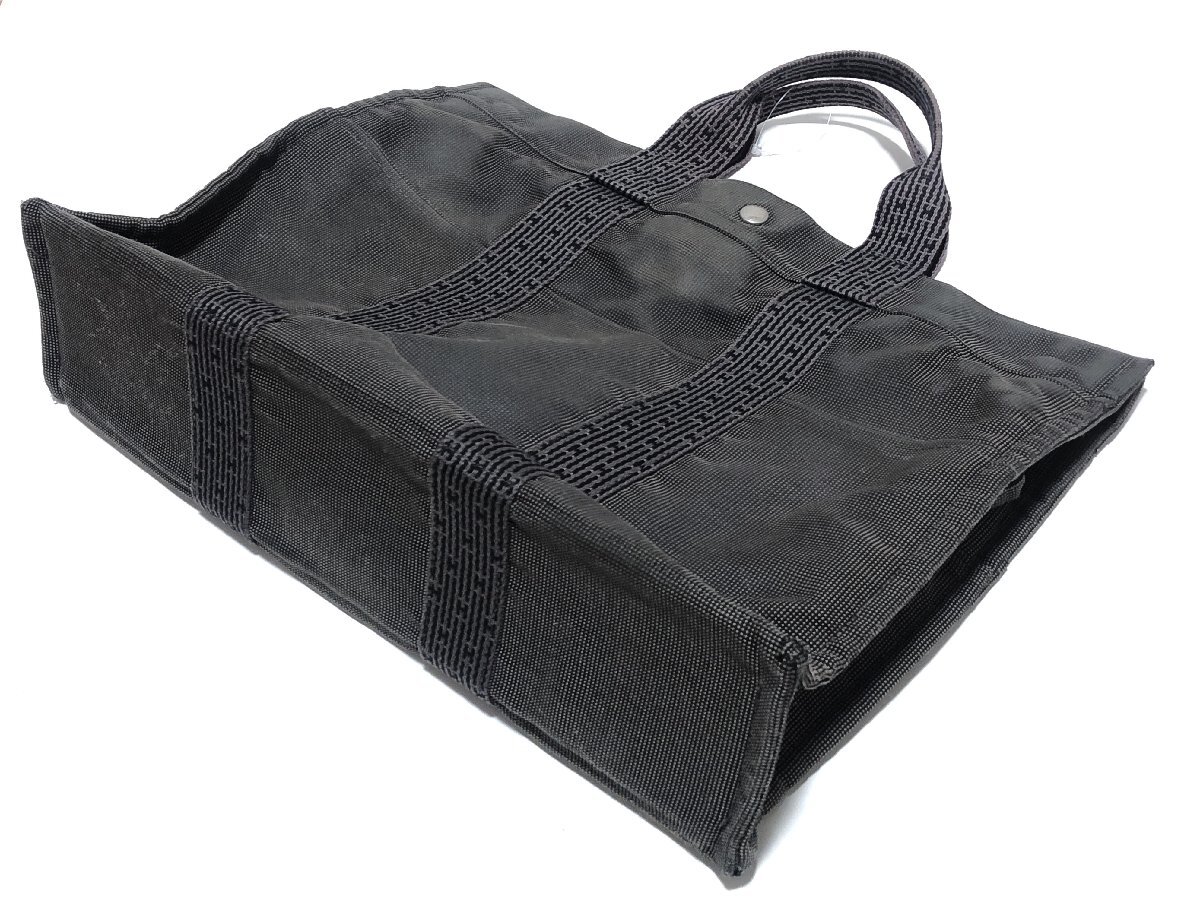 | 横 約42cm 縦 約33cm 奥行 約11cm ■仕様 その他■ ダークグレー系 内側:大ポケット×1 外側:ポケット×6 ■ランク■ BCランク ●HERMES(エルメス)の人気シリーズ「エールライン」より、MMサイズのトートバッグです。 通勤・通学はもちろん、普段使いにもぴったりな実用性の高いアイテムです。 ◆ シンプルで上品なデザイン グレーのキャンバス地に、エルメスらしいトーンの落ち着いたラインデザイン。 シンプルながらも気品が漂う、ユニセックスで使える洗練された印象です。 ◆ MMサイズの高い収納力 A4サイズの書類やノートパソコンも楽々収納可能。 マチもあり、荷物が多い日にも安心のサイズ感です。 ◆ 軽量で丈夫なキャンバス素材 丈夫なナイロンキャンバスを採用しており、軽量ながら耐久性も抜群。 日常使いに最適な機能性を備えています。 ◆ スナップボタン&ファスナー付き 開口部にはスナップボタンとファスナーが付いており、 中身が見えず安心して持ち運べます。 ◆ 内外に便利なポケット 内ポケットの他、外側にも機能的なポケットを配置。 スマホや小物類の収納に便利です。 ◆ 状態 やや型崩れや色ヤケ(変色)、擦れによるテカリ等、全体的に使用感がありますが、破れ等のダメージはありません。画像上の微妙な色の相違はご了承ください。 ・お支払い方法 | ・クレジットカード決済 | ・paypay銀行 ・楽天銀行 ・ゆうちょ銀行 ・発送方法 | ・ ゆうパック120サイズ