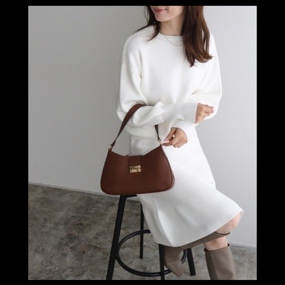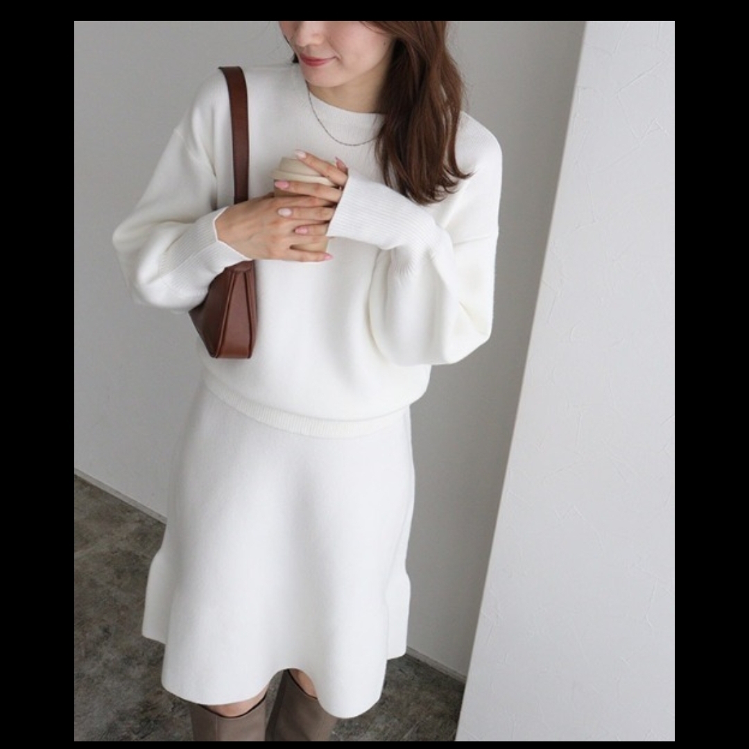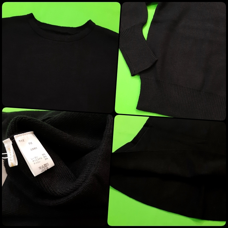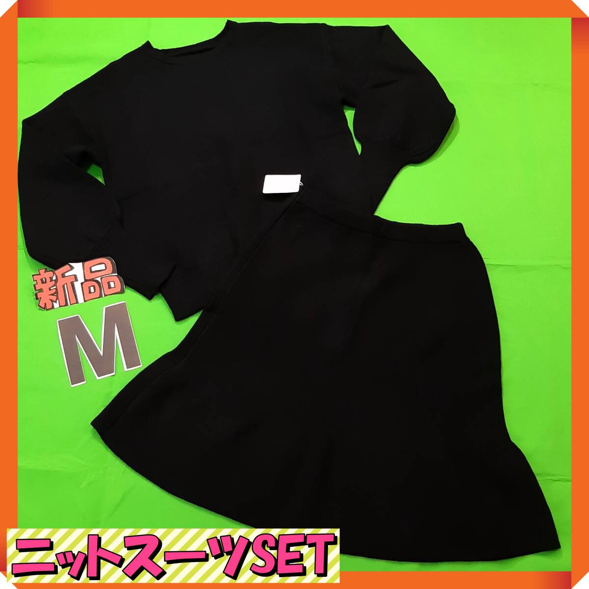 t2新品★送料無料★pierrot 6789円★上下2点セット 長袖ニット ひざ丈フレアースカート Mサイズ ブラック黒色 長袖セーター ツーピースーツ