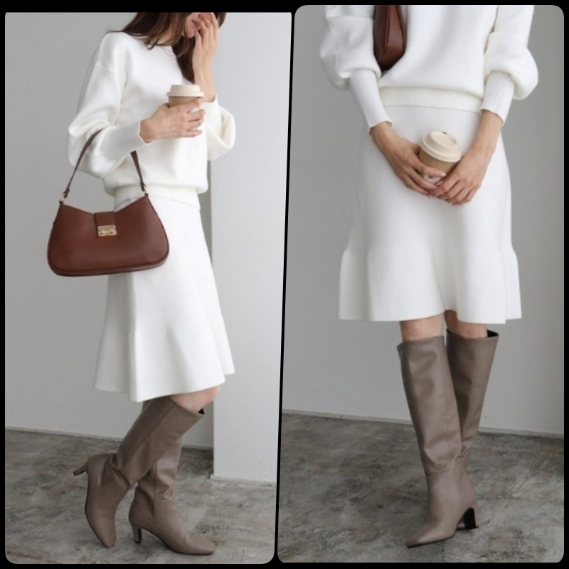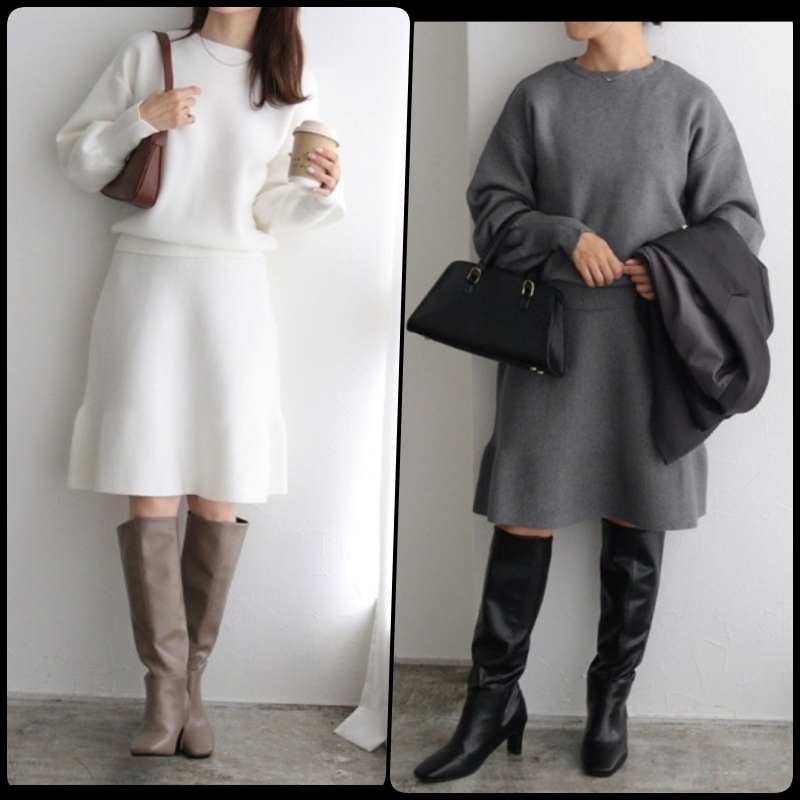 ストレッチする中厚手のニット生地で暖かくて着心地抜群です。