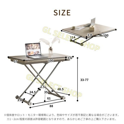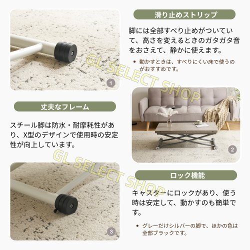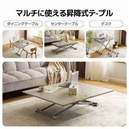 テーブル 天板が2倍に広がるガス圧昇降テーブル 100×50 100×100 ガス圧昇降式テーブル 作業用 デスク ローテーブル センターテーブル