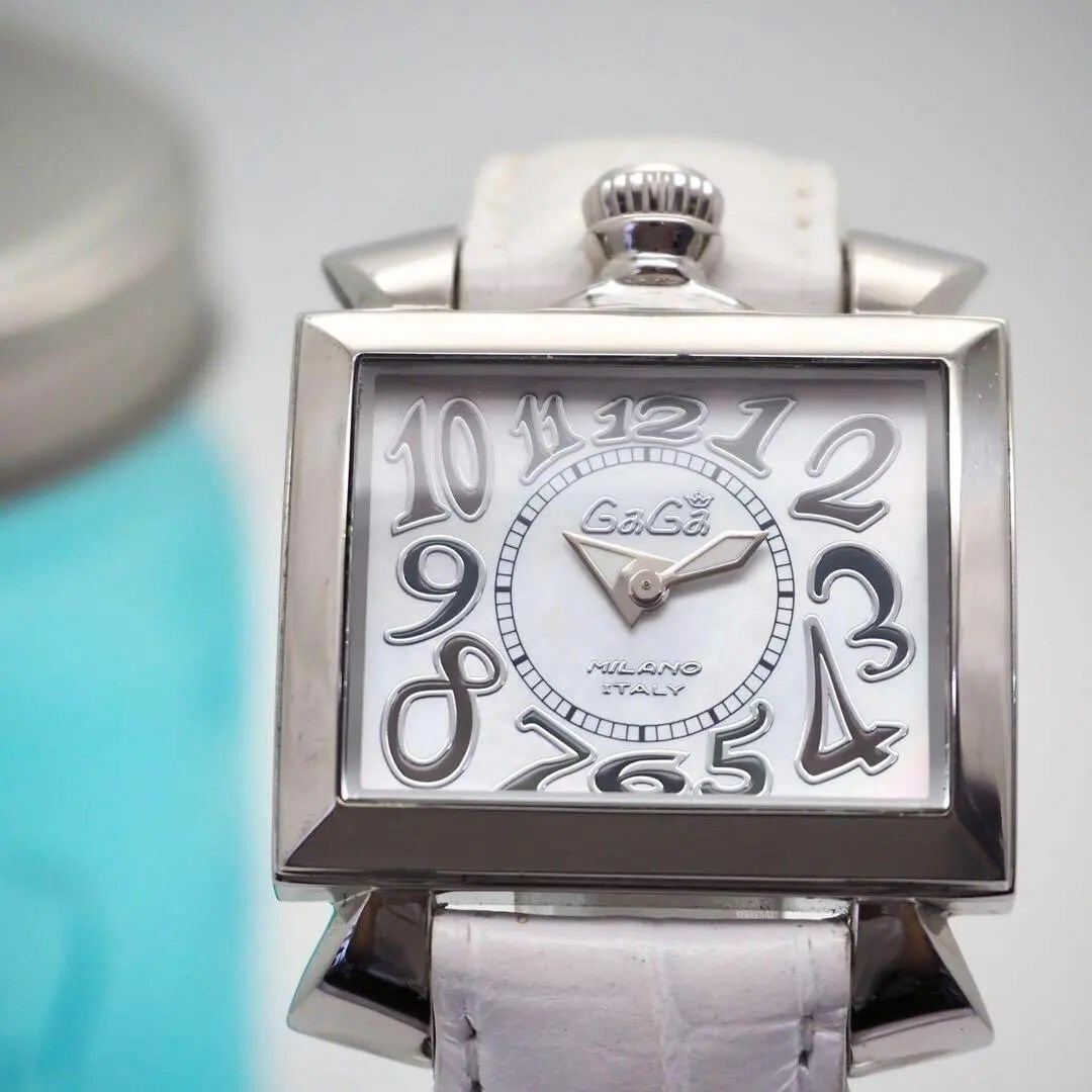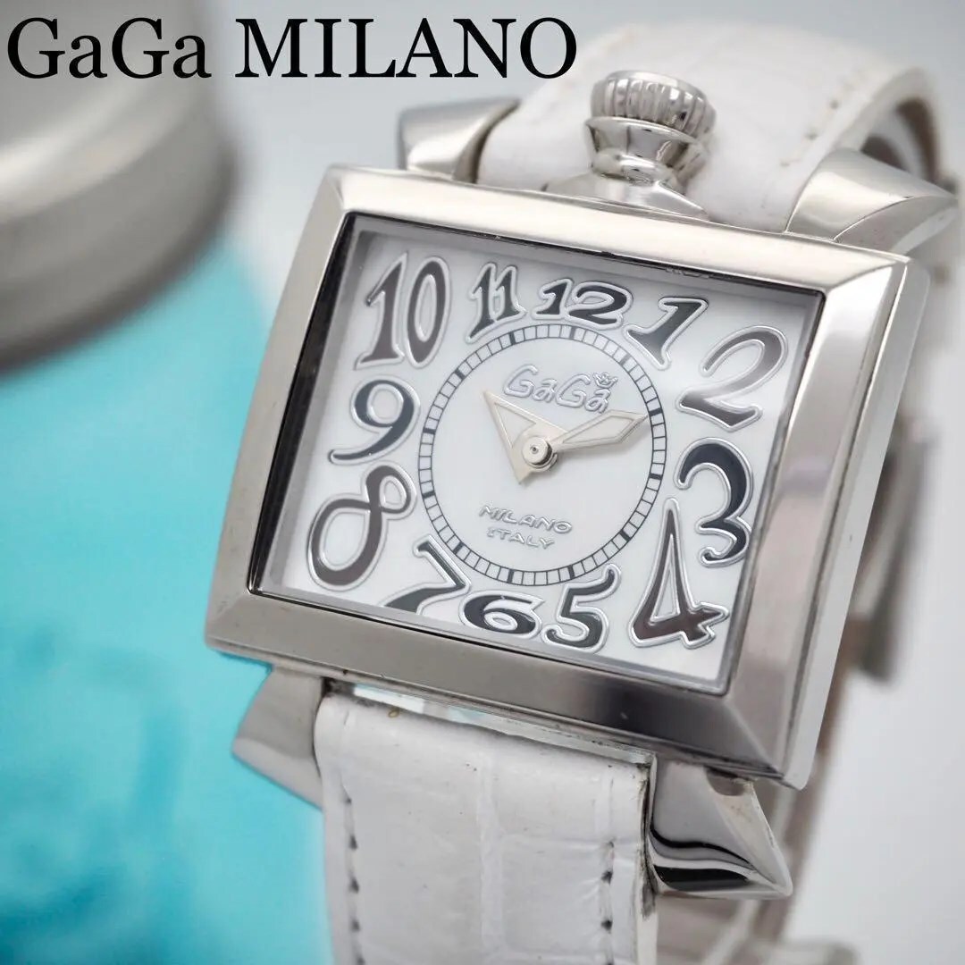 411 ガガミラノ 時計 メンズ ナポレオーネ 36 ホワイト 箱付き スクエア
