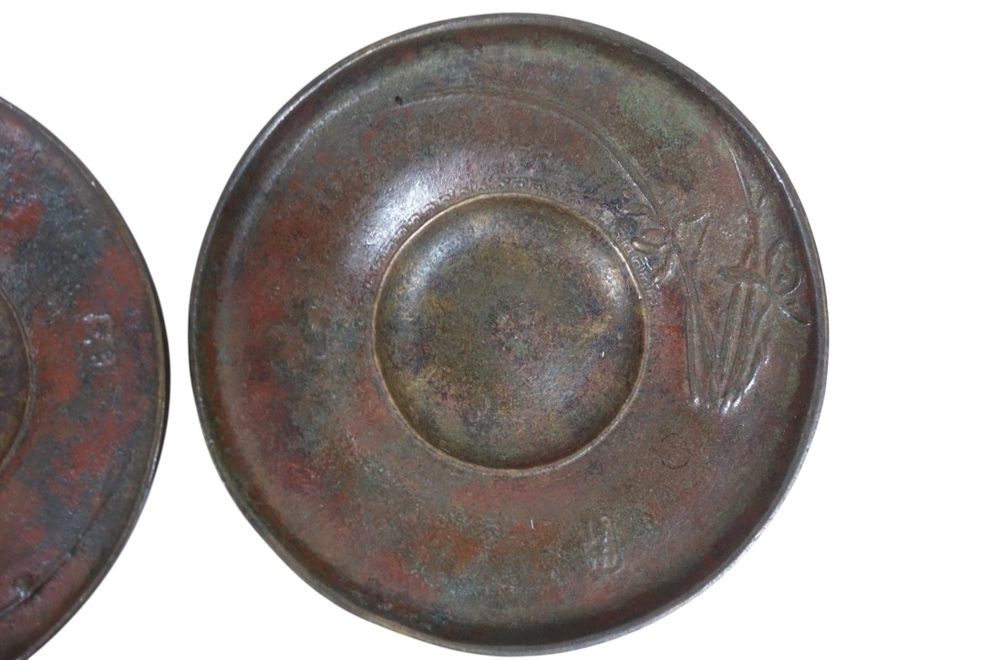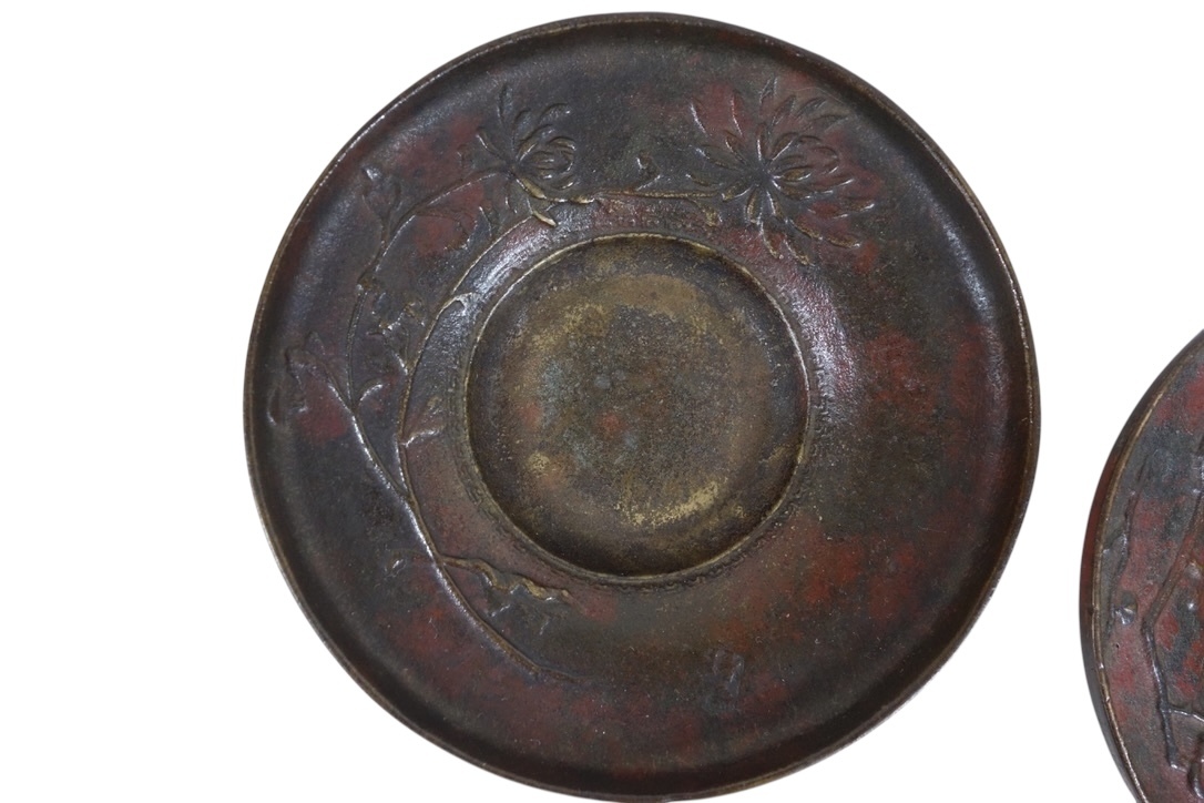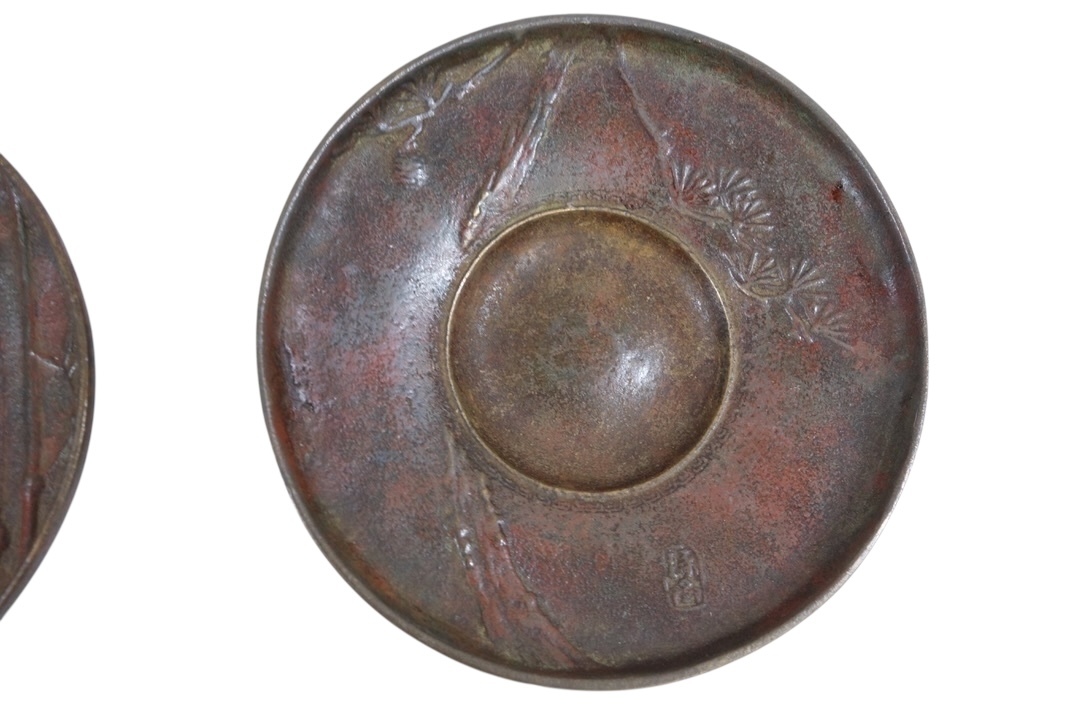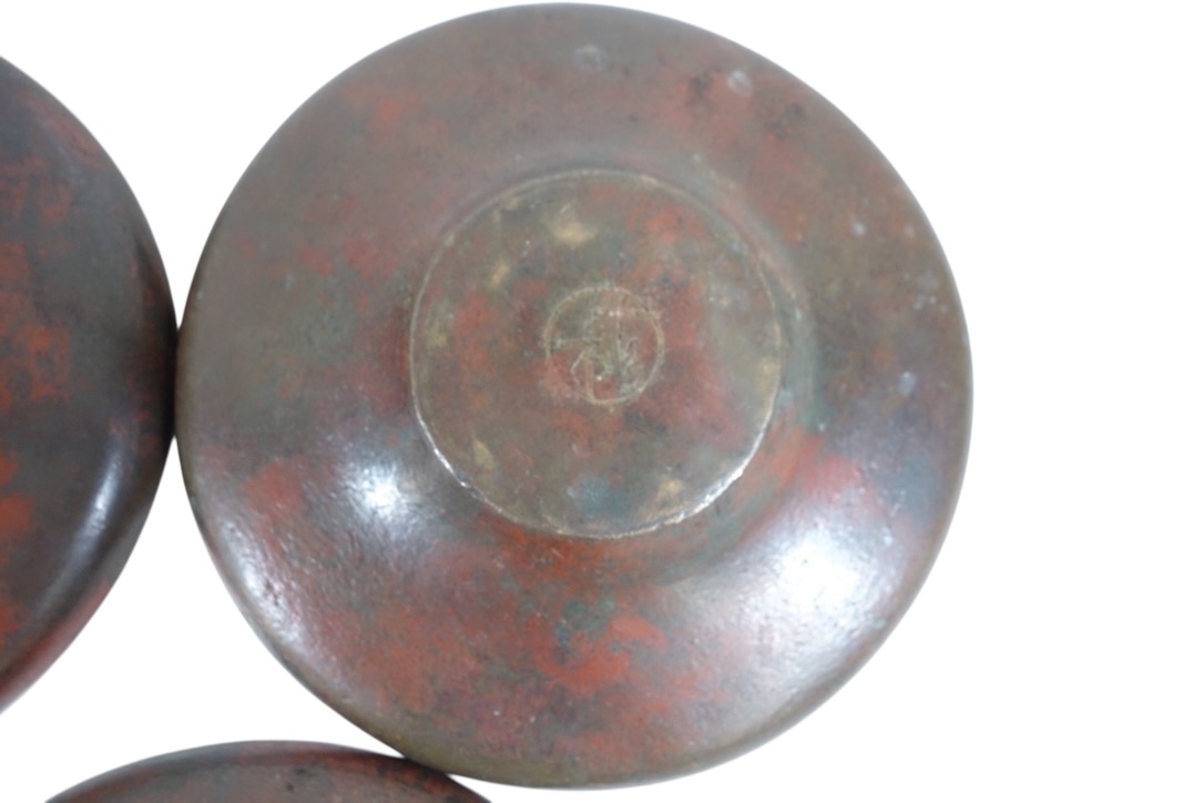 新潟県佐渡の著名な鋳金家! 昭和期 佐渡名工 本間琢斎 斑紫銅 銘「琢斎」図変わり 茶托 5客揃 煎茶道具 金工 GHK711