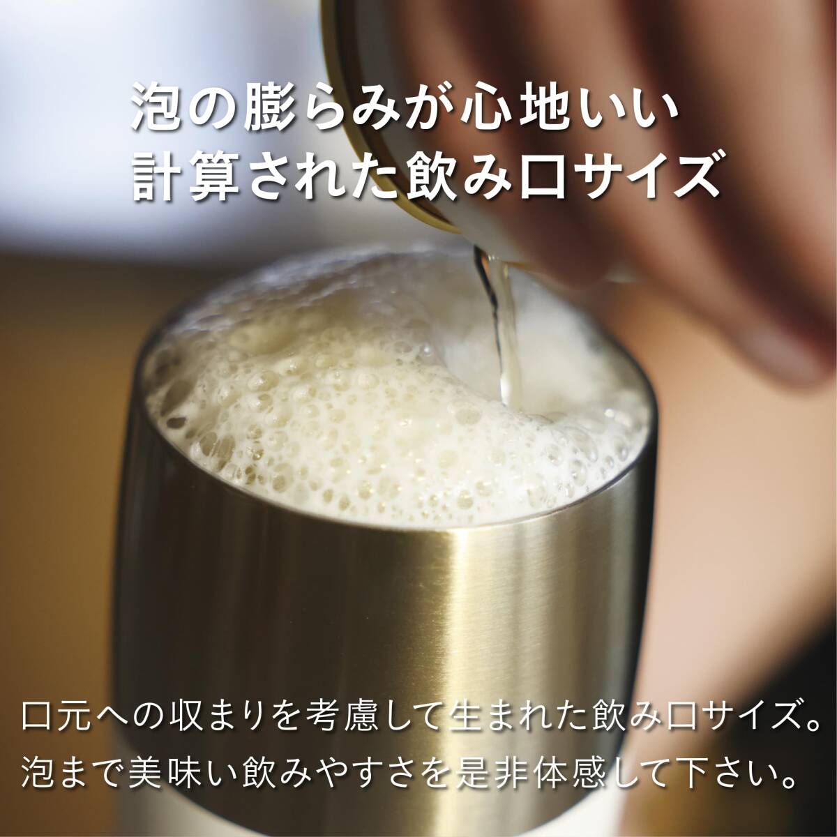 ・口元への収まりを考慮して生まれた飲み口サイズと泡まで美味い飲みやすさ。冷たい飲み物でも表面が結露せず、熱々の飲み物を入れても外側が熱くならない。