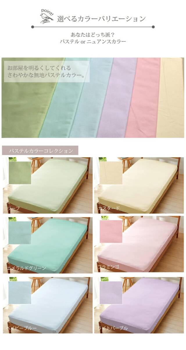 肌触りの良い日本製の綿100%の生地を使用したベッドウェアです。 シーツはゴム式ですのでお一人で簡単に掛けやすく、どんなお布団やお部屋にも合うお色味をご用意!