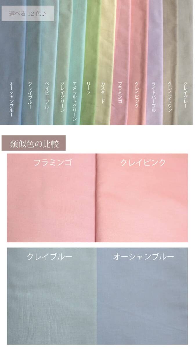 ・12色展開(br)リーフ/カスタード/エメラルドグリーン/フラミンゴ/ベイビーブルー/ライトパープル/クレイグリーン/クレイグレー/クレイブルー/クレイブラウン/オーシャンブルー/クレイピンク