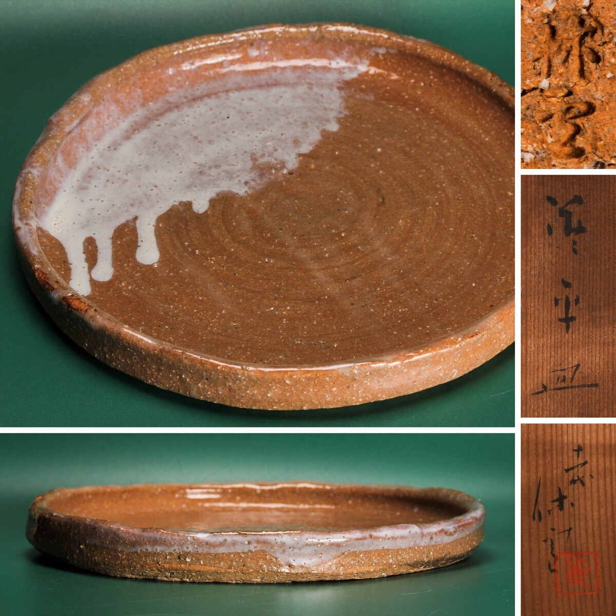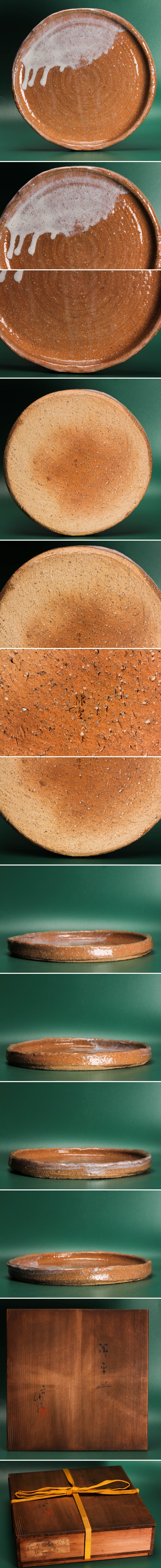 人間国宝 十一代 三輪休雪(壽雪) 萩平皿 幅26.4cm 共箱 本物保証