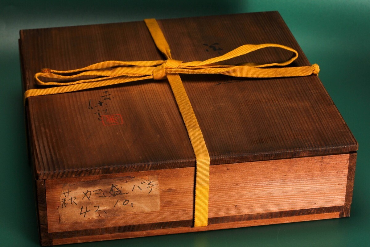 稀に他の作品名・作家名が書き付けられた木箱をお付けしております。誤認防止のため箱書き部分の画像を掲載しない場合もございます。
