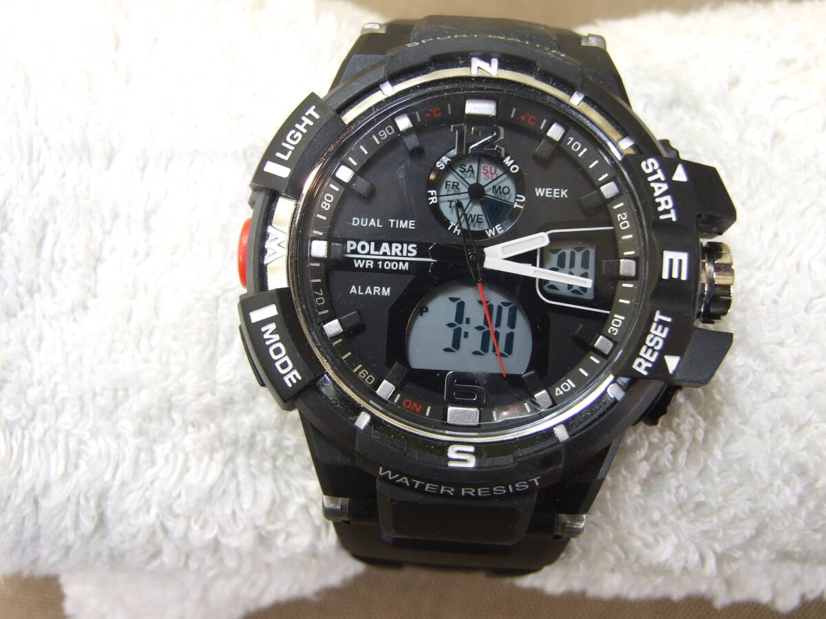 POLARIS デジアナ腕時計 作動品 説明書/箱なし アミューズメント景品 ブラック 0気圧防水/衝撃耐性 POLARIS 送料290円②