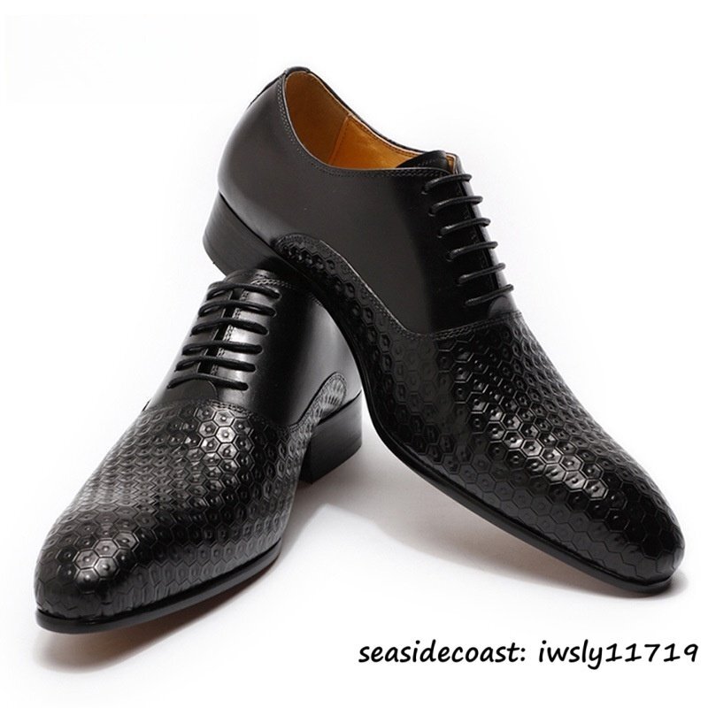定価9万超★最高級 牛革 ビジネスシューズ 本革 レザーシューズ 厚底 超希少 職人手作り 紳士靴 フォーマル 革靴 冠婚葬祭 ブラック 25.5cm