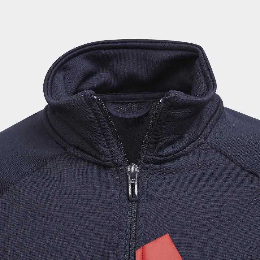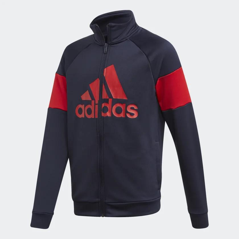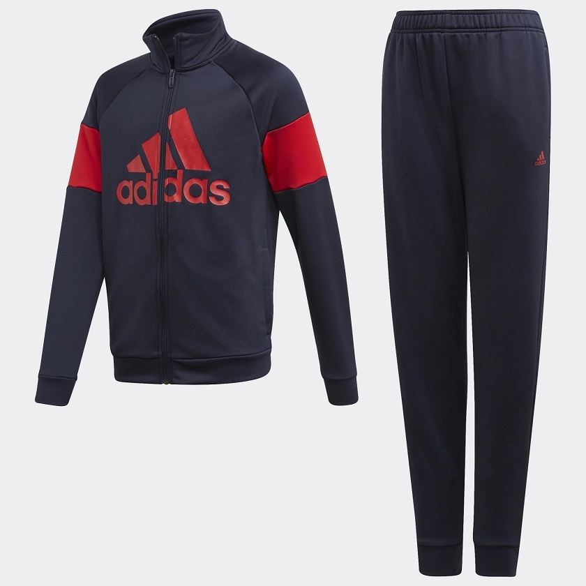 アディダス ジュニア バッジオブスポーツ トラックスーツ 160cm ネイビー/レッド 子供用 スタンドカラージャケット&パンツ ジャージ 上下