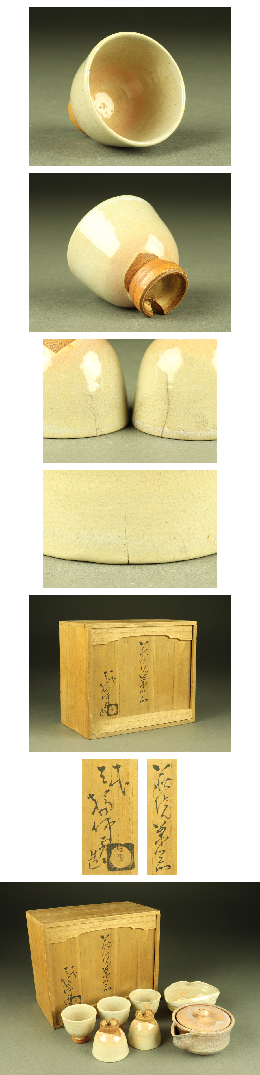 | 商品説明 | サイズ 宝瓶 幅 約 10.8×8.7cm 高さ 約 5.8cm 碗 幅 約 5.2cm 高さ 約 4.7cm 状態 画像参照 ※碗二客ニュー有り、碗一客窯傷有り。 ■ 発送方法 ▼ 佐川急便(補償あり/追跡あり) ※送料全国一律1,100円 但し北海道、沖縄、離島は+400円いただきます。 発送元は香川県となります。 複数点落札時に同梱をご希望される場合はその旨ご連絡ください、改めて送料をご連絡いたします。 ( 商品の組み合わせによっては同梱をお断りさせていただく場合があります。) 梱包材は再利用品を使用する事がありますのでご了承ください。 |