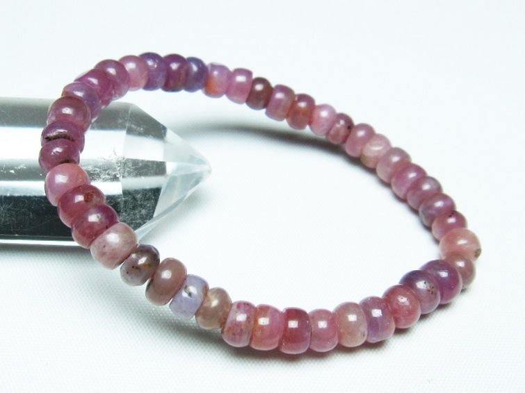 | ■商品名: ルビーブレスレット ■商品ID: T430-4772 ■商品重量:約 18.7g ■商品サイズ:内周約:151mm(±5mm)粒直径約:7mm(±0.5mm) 【ルビー(紅玉)】 7月の誕生石ルビーは世界四大宝石の一つに数えられ、その情熱的で気品ある色合いから「宝石の女王」と呼ばれています。 ダイヤモンドの次に硬いコランダムのグループに属し、コランダムの中でも赤色をしたものがルビー、それ以外の色はサファイアに分類されます。 ルビーは困難に打ち克つ情熱と勝負運をもたらす「勝利の石」としても有名です。 古代ローマでは、ルビーにはローマ神話の武勇に優れた軍神マルスの力が宿っていると考えられており、戦士達が戦場に赴く際にはルビーをお守りとして身に着けていたともいわれています。 このほかにもルビーの燃えるような赤色は邪悪なものを跳ね除け生命力を高める力を持つといわれています。身体的には低血圧・貧血・冷え性を改善など血液に関わる諸症状に効果を発揮するとされています。 ルビーは持ち主の魅力を高めたり、積極性を引き出してくれますので恋愛のお守りとして心強いサポートが得られるでしょう。 また女性イメージの強い石ではありますが、出世や商談などビジネスで成功を収めたいという男性にもおすすめしたい石です。 ⇒ ルビーをもっと詳しく ◆ワンポイント情報 モース硬度が9と非常に高い硬度の石ですので身に着ける際に特に注意する点はありませんが、日光に長時間あてると退色してしまう恐れがありますので保管する際には十分に注意するようにしましょう。 |