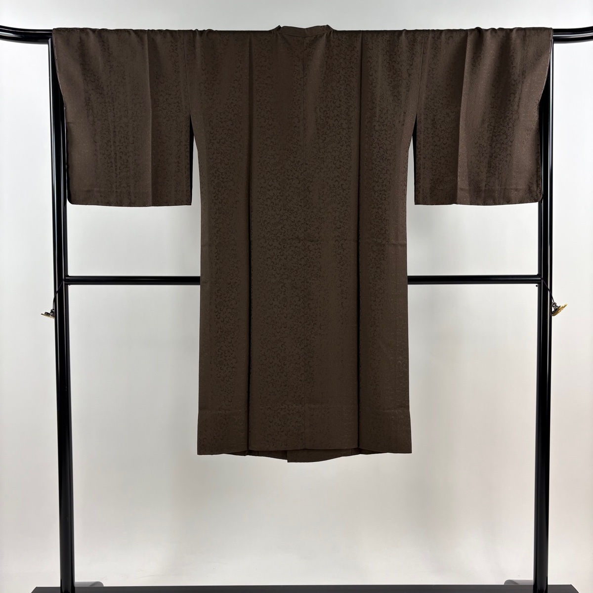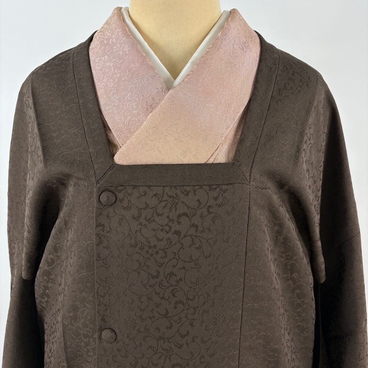 | 道行 美品 名品 和装コート 角衿 花唐草 焦茶色 身丈111 裄丈67.5 L 正絹 【中古】 |