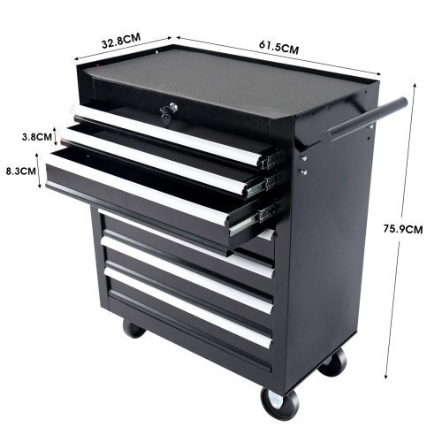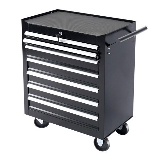 ローラーキャビネット 7段 ロールキャビネット ツールキャビネット ツールボックス 大型キャスター ブラック 1.9